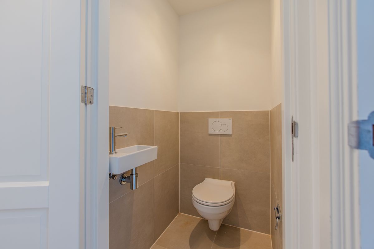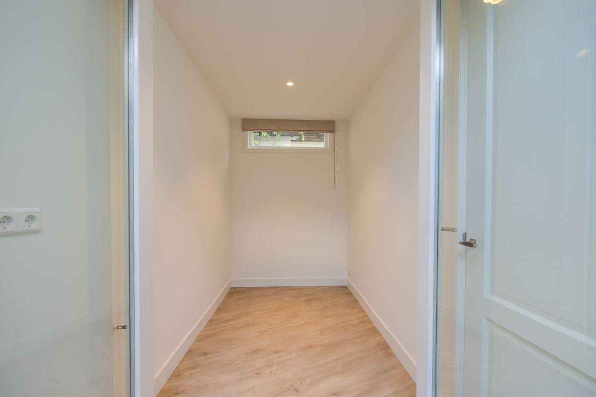 Hal met toegang tot de tweede slaapkamer. De slaapkamer heeft een prettige omvang. Tevens. vanuit de hal toegang tot de badkamer en een apart toilet met fontein. De badkamer is voorzien van een luxe inloopdouche, dubbele wastafel, handdoek radiator. De provisieruimte biedt tevens ruimte voor de wasmachine en droger.