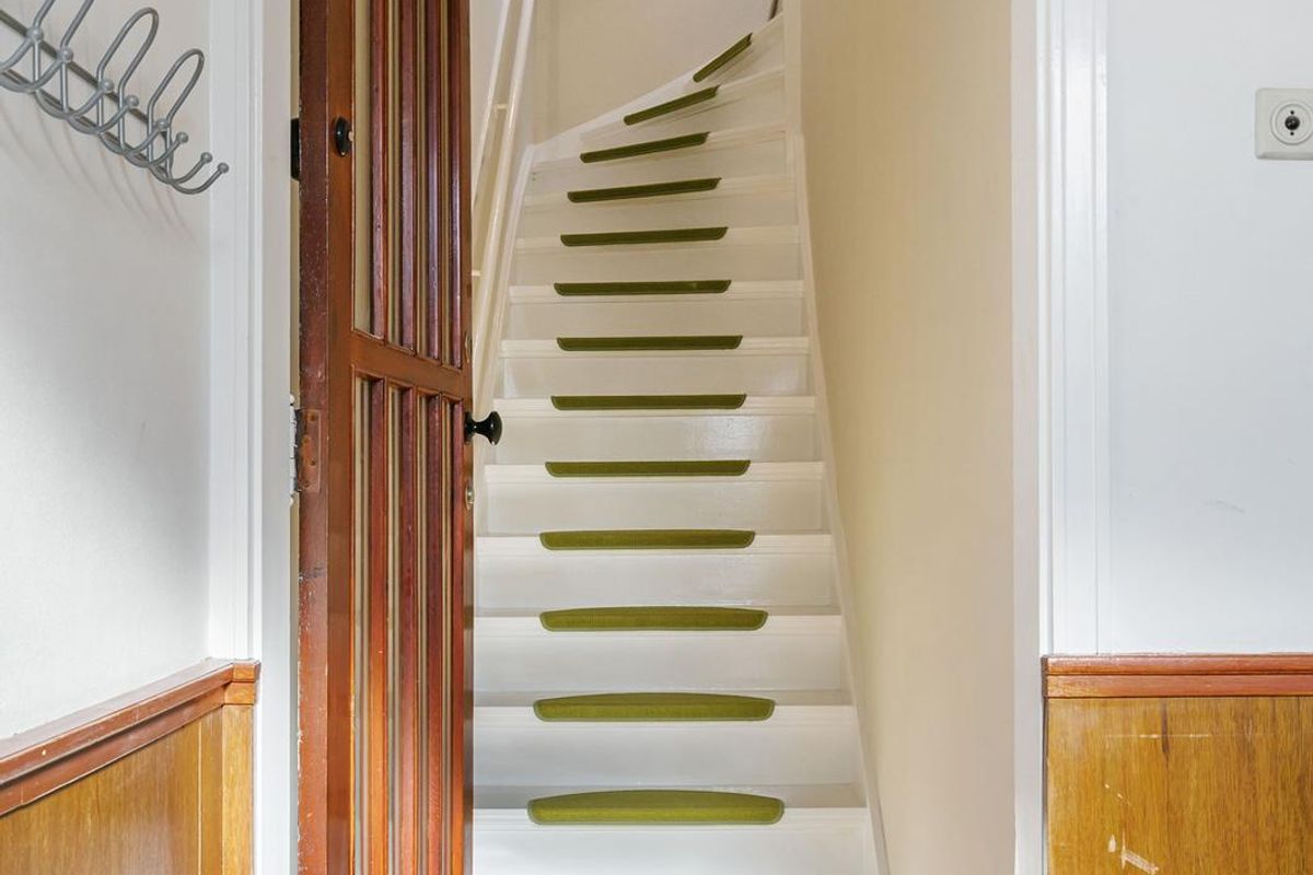 Via het gesloten portiek bereik je de voordeur op de eerste etage. Een binnentrap brengt je naar de topverdieping, waar een groot daklicht zorgt voor een zee aan licht in de centrale hal.