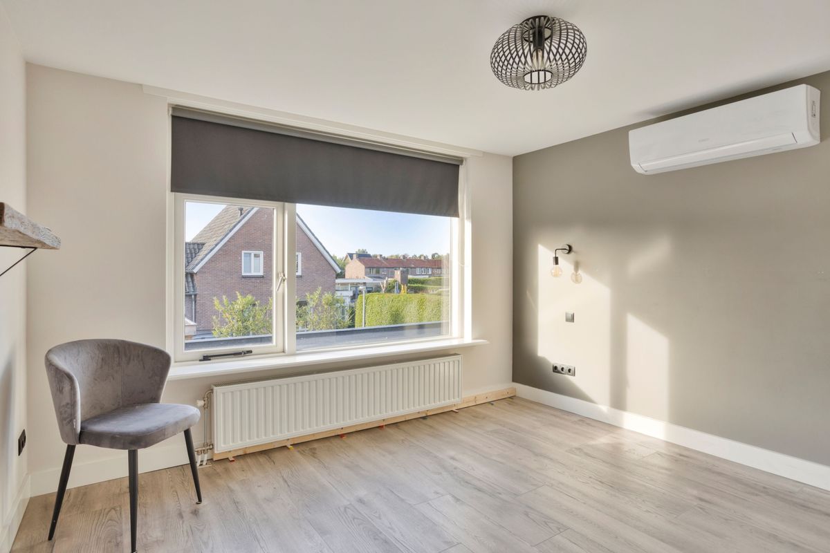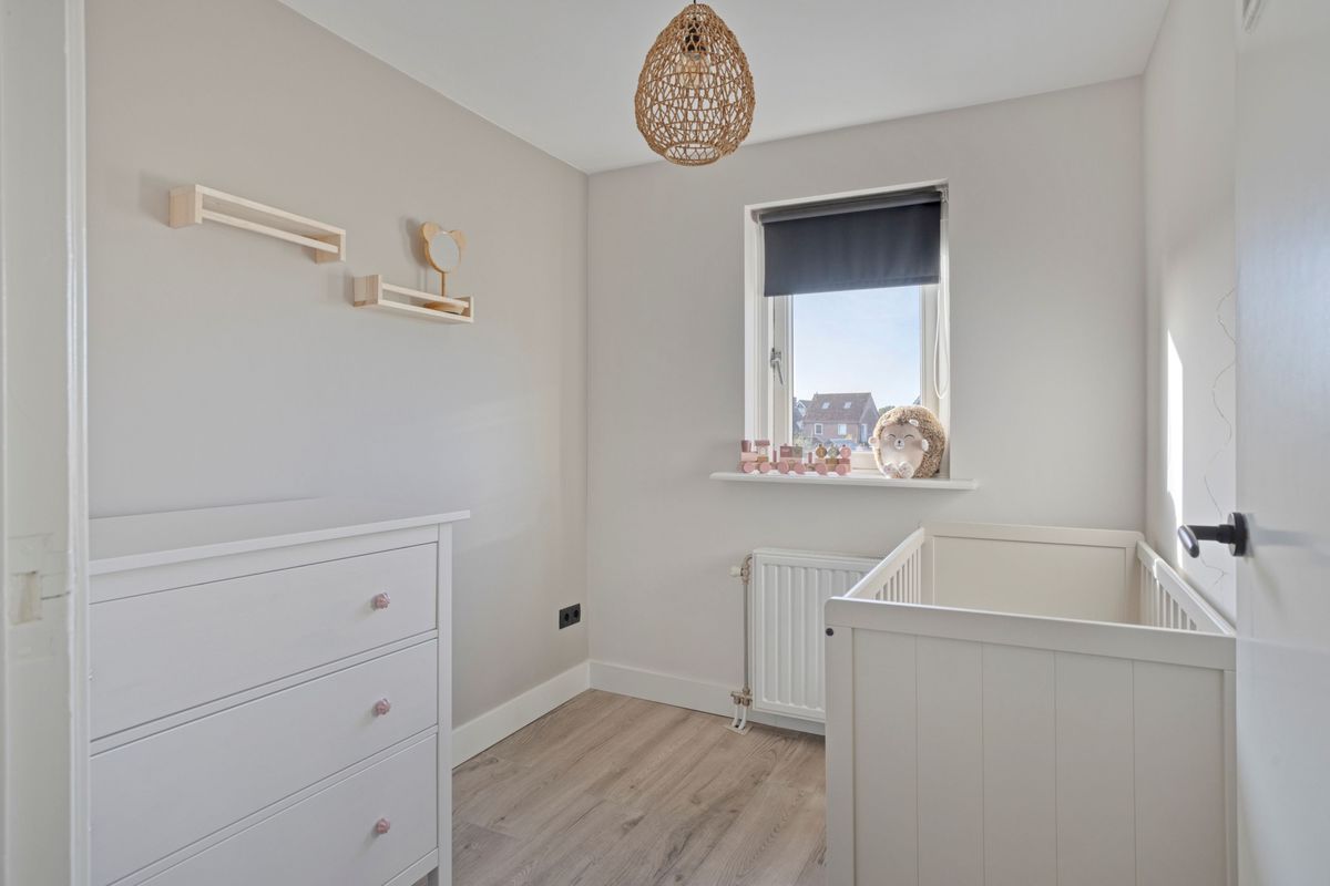 De overloop beschikt over een handige inbouwkast en geeft toegang tot drie slaapkamers, waarvan twee met ingebouwde kastruimte. Dankzij de rechte muren zijn de kamers praktisch en ruim in te delen. De moderne badkamer is voorzien van een inloopdouche, een stijlvol wastafelmeubel en comfortabele vloerverwarming. In 2023 werd een airco geïnstalleerd in de ouderslaapkamer, waardoor de hele verdieping van extra comfort geniet.