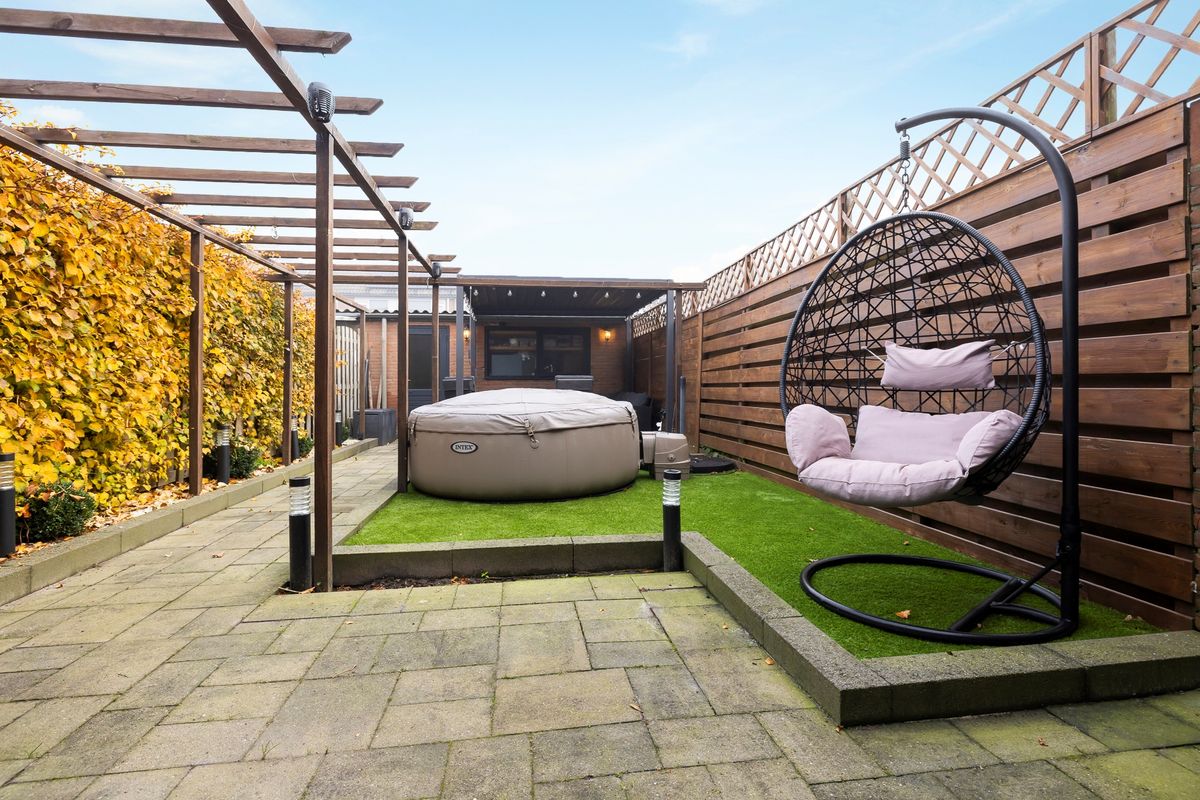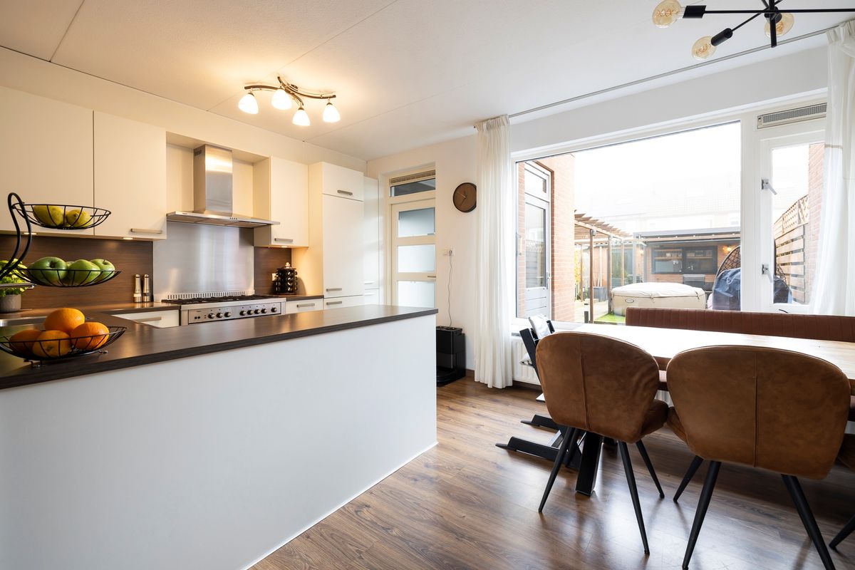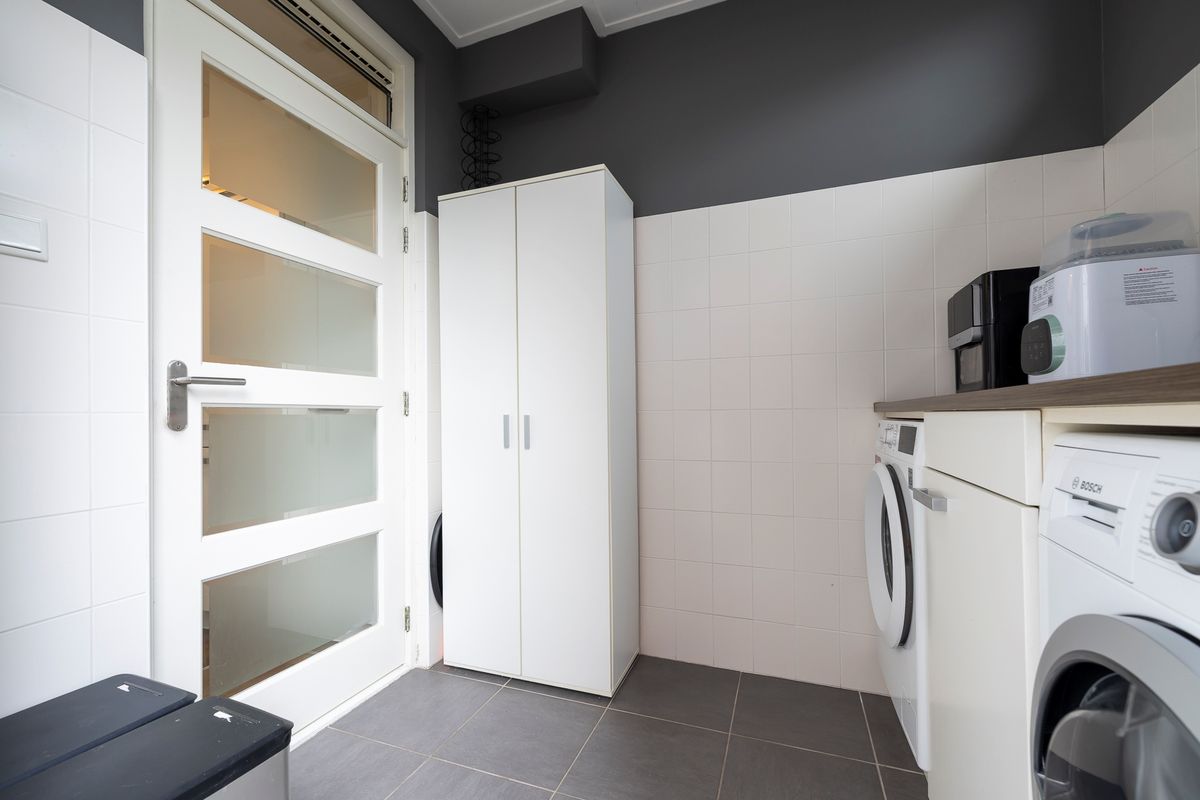 Via de uitgebouwde voorentree komt u binnen in de hal met de meterkast en het toilet. Het toilet is in 2021 vernieuwd en heeft mechanische ventilatie. De lichte woonkamer heeft een open keuken en grote ramen voor veel lichtinval. De keuken met kookschiereiland is modern en heeft onder andere een koel-vries combinatie vaatwasser en groot 6-pits gasfornuis. Achter de keuken ligt de bijkeuken met plek voor de wasmachine en droger. De tuin is keurig ingericht met sierbestrating, een heerlijk terras en beplanting. Achter in de tuin staat een stenen berging met elektra en deur naar de steeg.