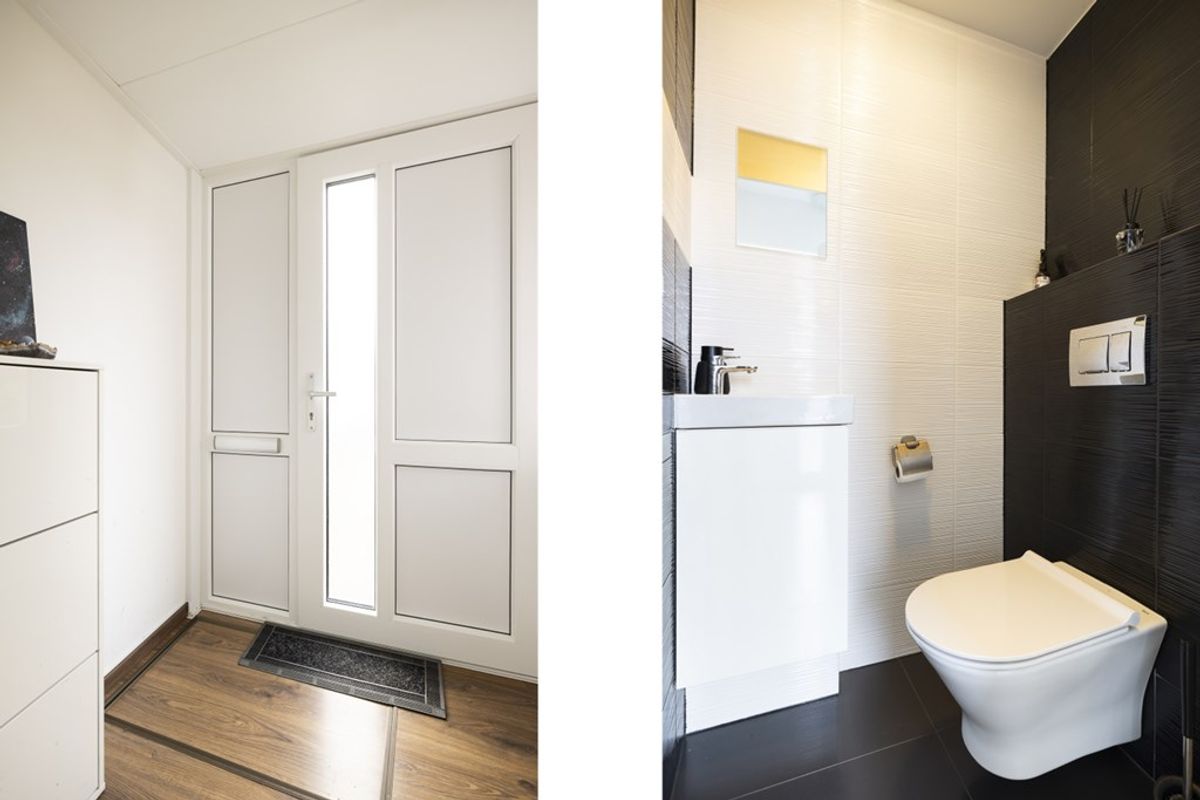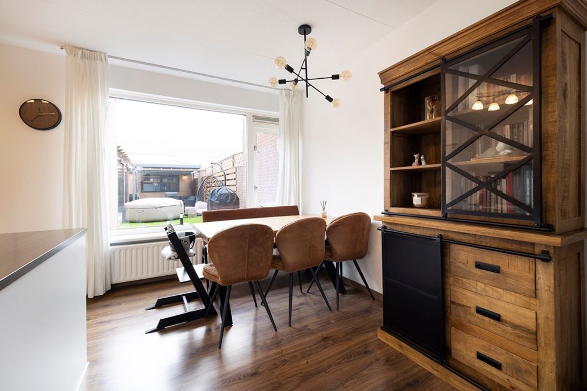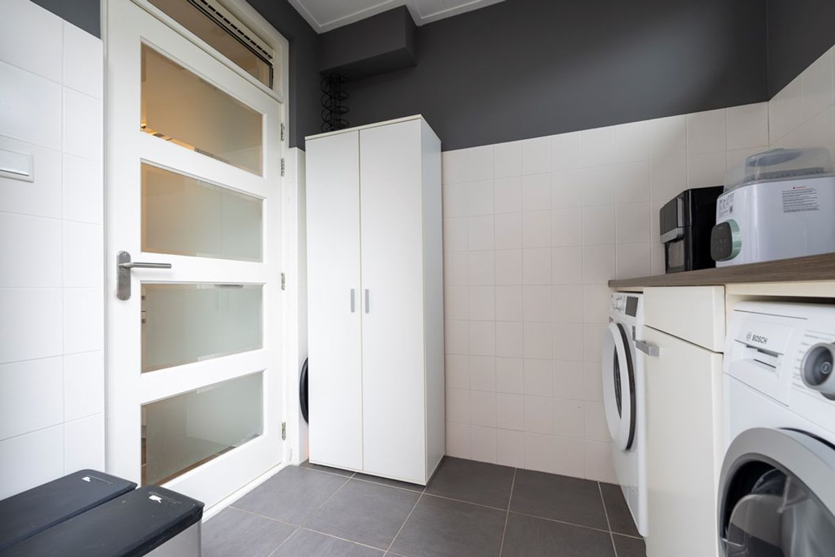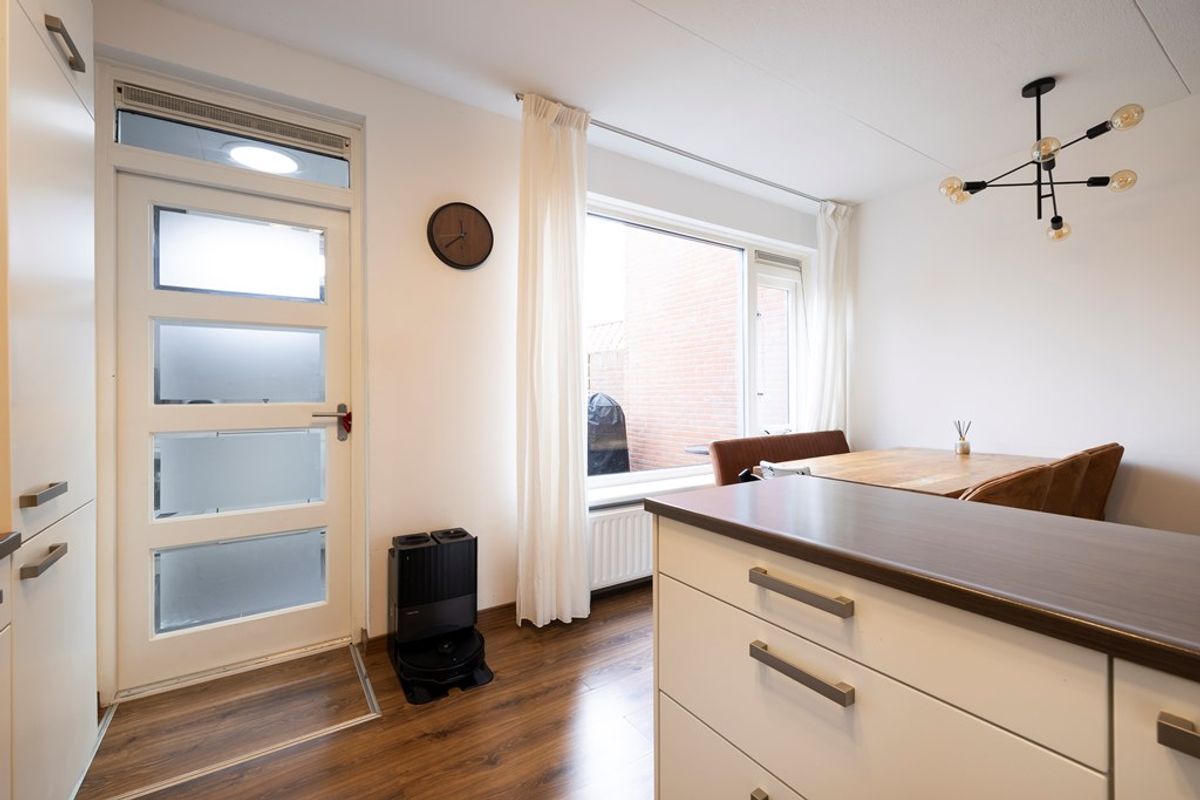 Via de uitgebouwde voorentree komt u binnen in de hal met de meterkast en het toilet. Het toilet is in 2021 vernieuwd en heeft mechanische ventilatie. De lichte woonkamer heeft een open keuken en grote ramen voor veel lichtinval. De keuken met kookschiereiland is modern en heeft onder andere een koel-vries combinatie vaatwasser en groot 6-pits gasfornuis. Achter de keuken ligt de bijkeuken met plek voor de wasmachine en droger. De tuin is keurig ingericht met sierbestrating, een heerlijk terras en beplanting. Achter in de tuin staat een stenen berging met elektra en deur naar de steeg.