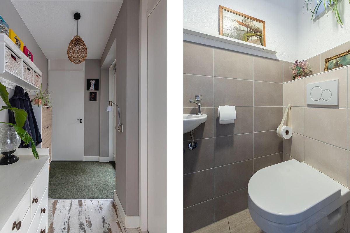 U parkeert uw auto op eigen terrein, mét een autolaadpunt: denk aan elektrisch rijden zonder gedoe. Zodra u de hal betreedt, voelt u dat deze woning doordacht is: de entree loopt naadloos over in een berging (met aparte toegang van buiten) waar ook de meterkast is gesitueerd, en een toiletruimte die bereikbaar is vanuit het entréegebied.