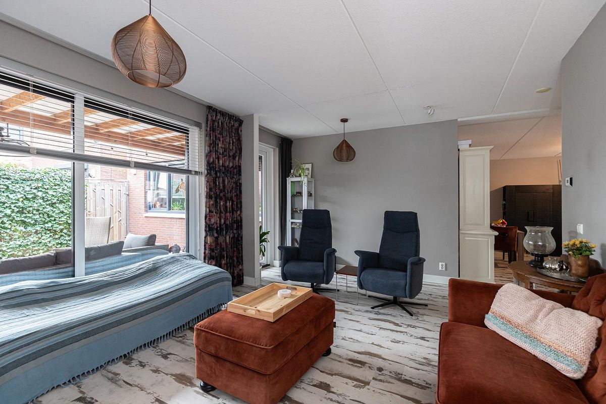 Voorbij de hal ontvouwt zich een royale leefomgeving. De woonkamer biedt via een openslaande deur toegang tot het patioterras op het zuidoosten – dankzij de aangename overkapping kunt u hier vanaf het vroege voorjaar tot ver in het najaar genieten van buiten zijn, bescherming én licht verenigd.