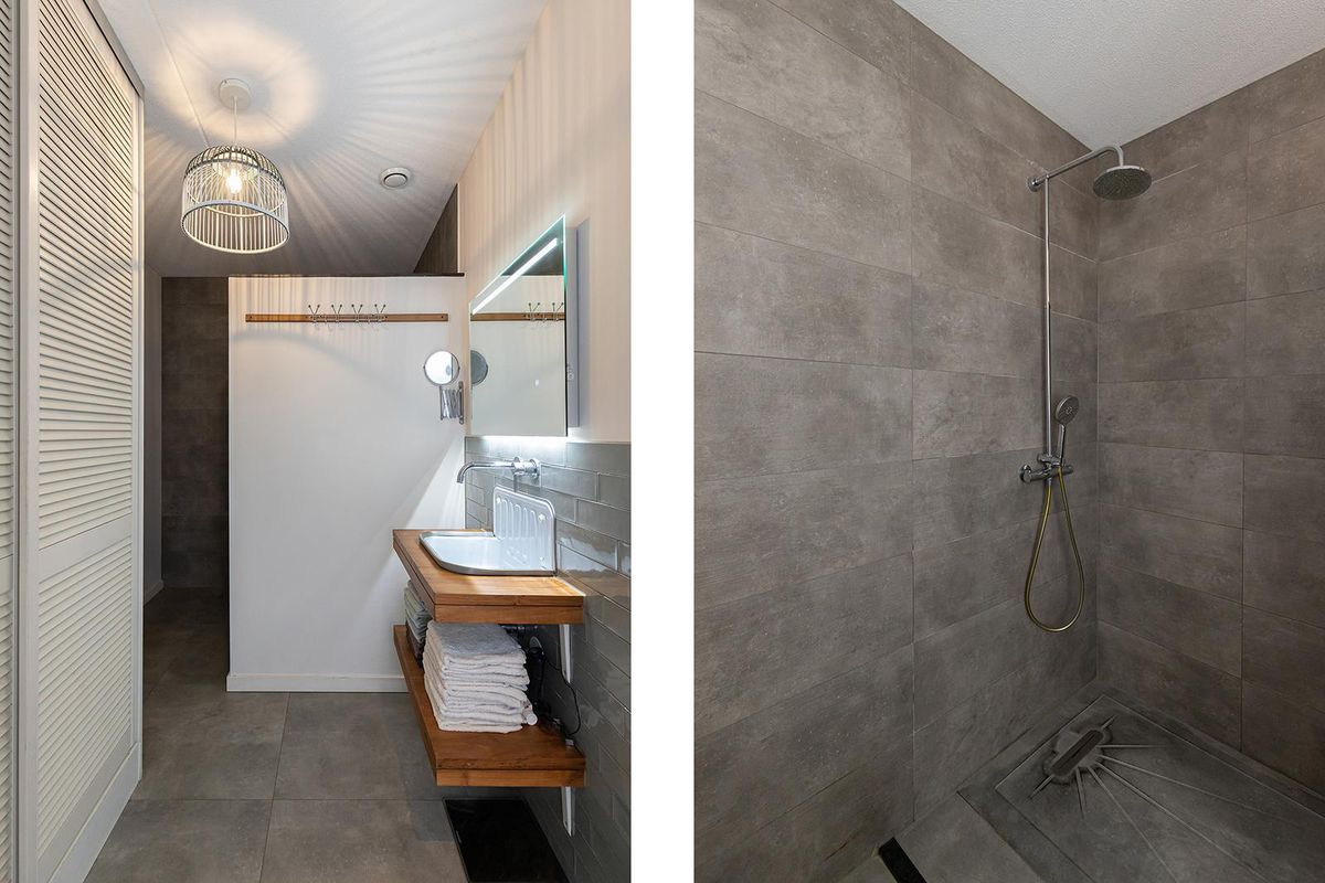 De woning telt twee fijne slaapkamers die rust en ruimte bieden. De badkamer is strak en stoer: een inloopdouche, een badmeubel met verlichte spiegel én een ingebouwde kast met aansluitingen voor de wasapparatuur – praktisch en stijlvol tegelijkertijd.
