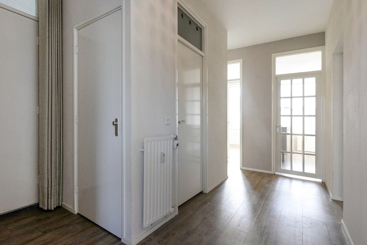 Entree appartement, ruime hal met deur naar de L-vormige woon-eetkamer met schouw/haard, drie inbouwkasten en een deur naar een klein voorbalkon. Vrijwel het gehele appartement is voorzien van een mooie PVC vloer. De ruime achter slaapkamer heeft een laminaatvloer, drie inbouwkasten en een deur naar een zeer zonnig balkon op het Zuid Westen met een vaste kast en elektra. De achter zijkamer is voorzien van een kastenwand met wasmachine en droger aansluiting. De badkamer heeft een ruime inloopdouche, wastafelmeubel, zwevend toilet, fonteintje en een designradiator. Het geheel is in lichte tinten uitgevoerd. De keuken is voorzien van een moderne luxe inrichting koel-vriescombinatie een vaatwasser, een nieuwe combimagnetron, inductiekookplaat en een extra breed kunststof aanrechtblad met laden en kasten. Aangrenzend de deur naar het balkon met elektrisch bedienbaar zonnescherm.
