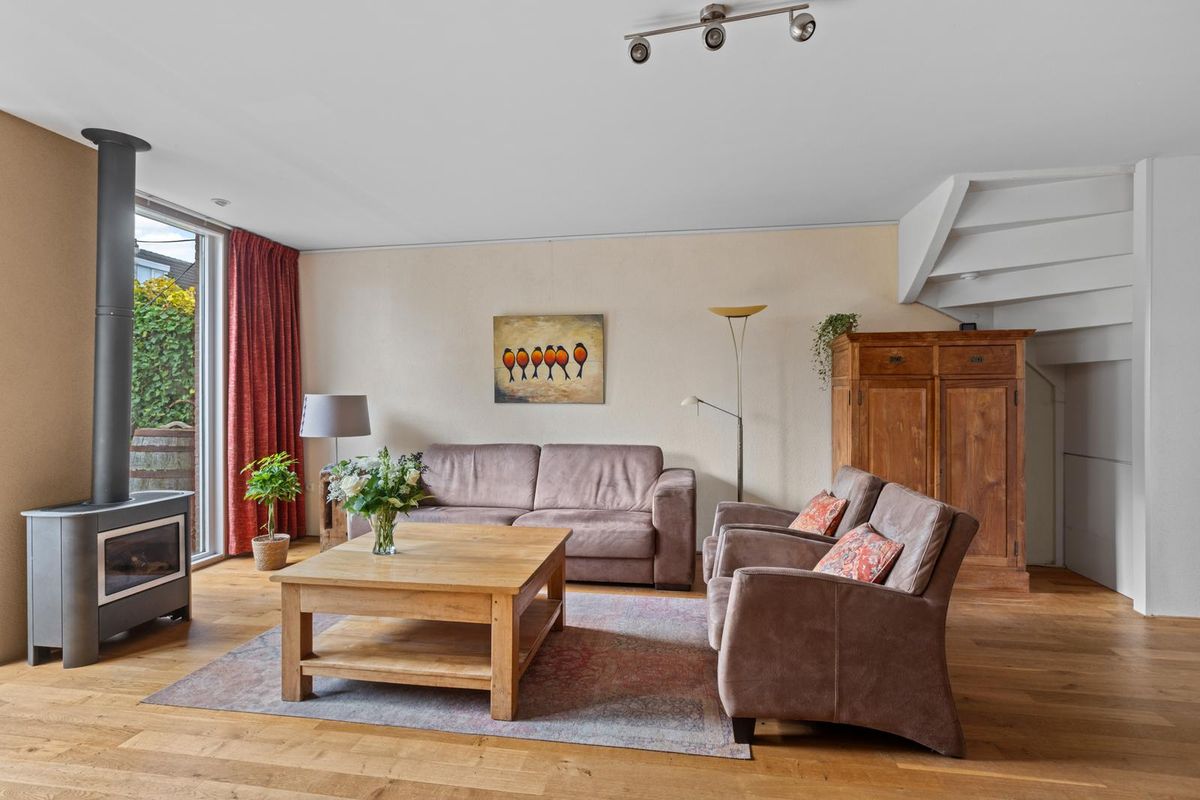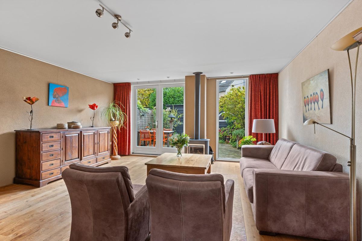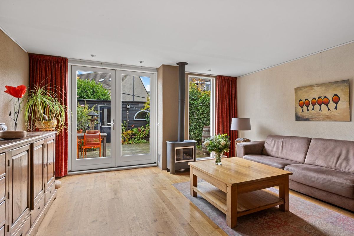Zodra je binnenstapt, kom je midden in de gezellige living terecht. Je oog valt direct op de fijne zithoek aan de achterzijde, waar de openslaande deuren en het hoge raam voor een prachtige lichtinval zorgen. De hoogte van het glas geeft de ruimte een open en ruimtelijk gevoel. De gaskachel maakt het geheel compleet en nodigt uit om lekker te ontspannen met een goed boek of een kop thee na een drukke dag.