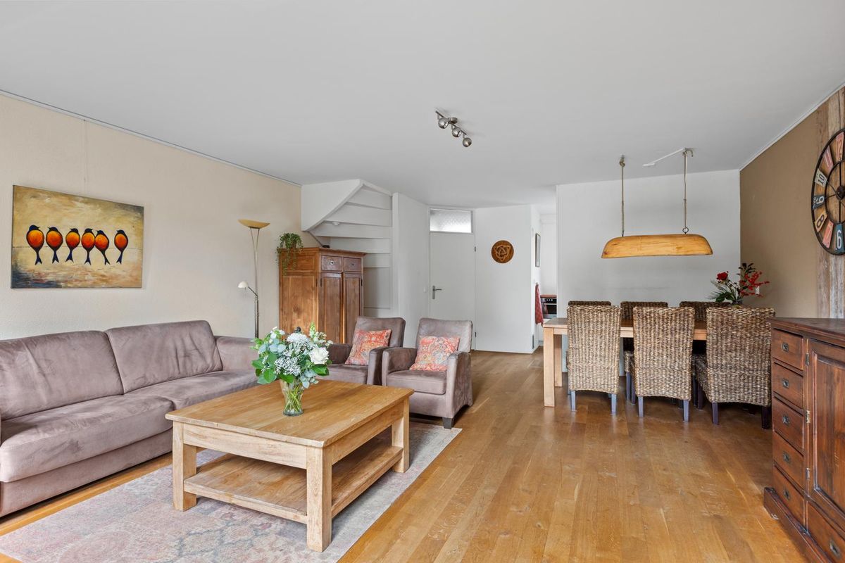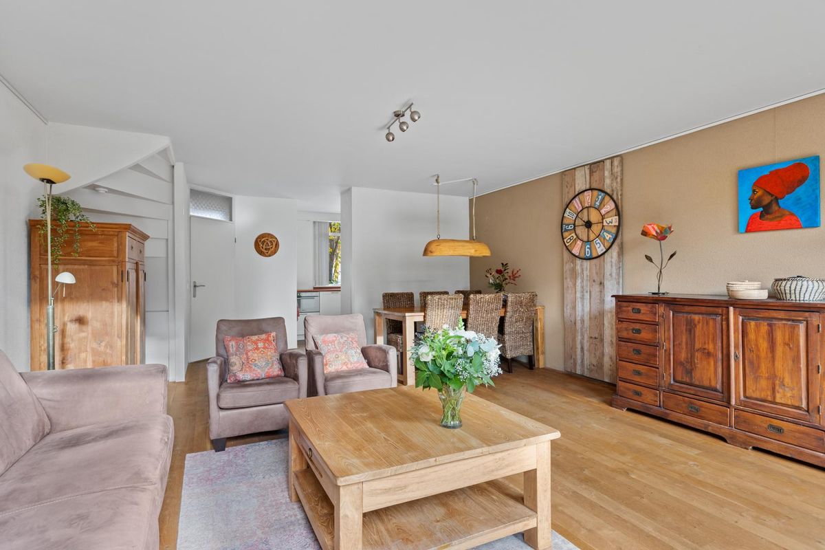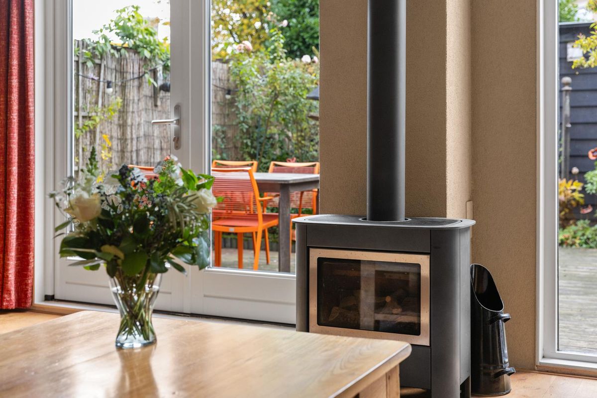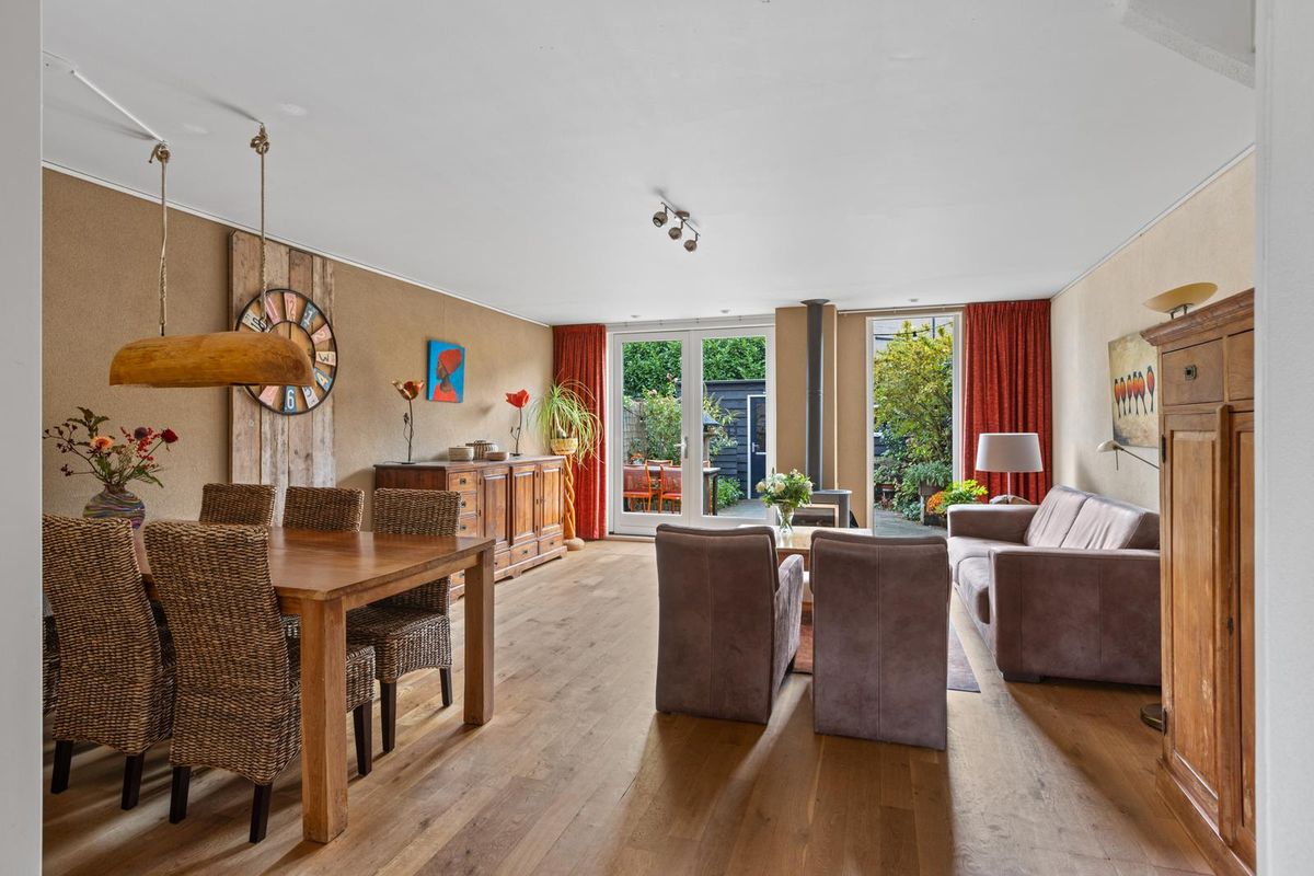 Zodra je binnenstapt, kom je midden in de gezellige living terecht. Je oog valt direct op de fijne zithoek aan de achterzijde, waar de openslaande deuren en het hoge raam voor een prachtige lichtinval zorgen. De hoogte van het glas geeft de ruimte een open en ruimtelijk gevoel. De gaskachel maakt het geheel compleet en nodigt uit om lekker te ontspannen met een goed boek of een kop thee na een drukke dag.