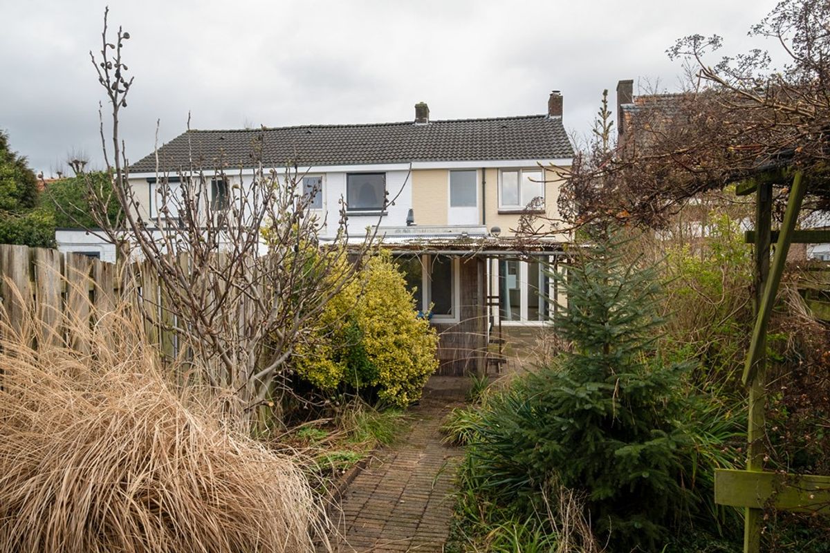 De ruime achtertuin is bereikbaar via een achterom. Hier geniet je van zon en privacy. De vrijstaande berging biedt ruimte voor fietsen en opslag — of zoals wij zeggen: een perfecte plek voor een man cave, hobbyruimte of speelplek.