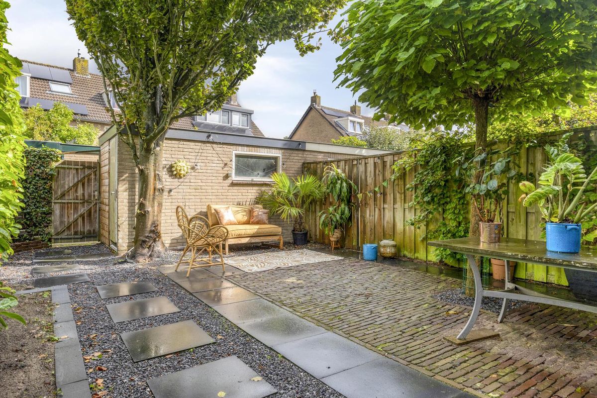 De achtertuin (ca. 10,20 x 6,20 m) is in 2024 opnieuw aangelegd en biedt een fijne mix van groen en ruimte voor het hebben van meerdere leuke zitjes. Achterin de tuin staat een stenen berging met elektra, daarnaast treft u hier ook de achterom aan. De voortuin (ca. 6,80 x 6,20 m) zorgt voor extra privacy en een groene uitstraling.