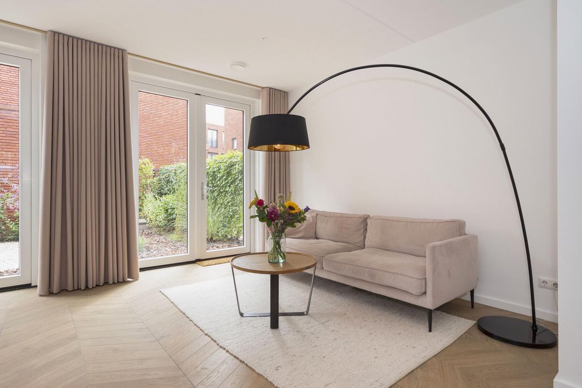 - Fijne tuingerichte woonkamer ca. 29 m2 met open keuken aan straatzijde, groot ca. 10 m2.