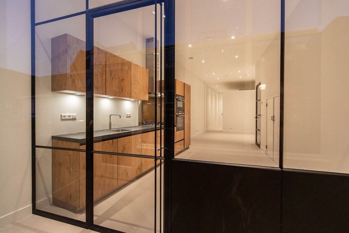 Bij binnenkomst treft u een ruime hal over de gehele breedte van het appartement, met voldoende ruimte voor een garderobe of fietsenstalling. De lichte leefruimte straalt rust en ruimte uit, mede door de fraaie zwart stalen tussenpui en het hoge plafond. Aan de voorzijde van het appartement is de moderne keuken (uit 2020) te vinden. Deze is voorzien van hoogwaardige inbouwapparatuur, waaronder een 5-pits gaskookplaat, Quooker, stoomoven/magnetron, heteluchtoven met grillfunctie, koel-/vriescombinatie en vaatwasser.