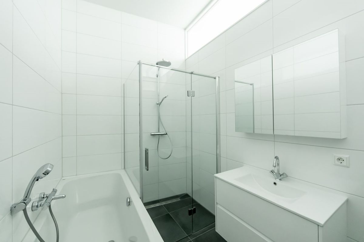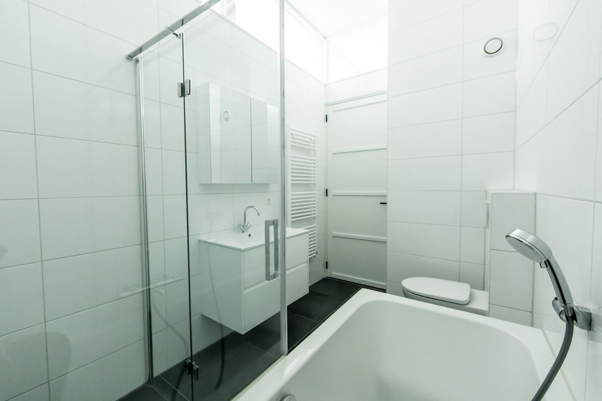 Aan de achterzijde van het appartement vindt u twee goed afgewerkte slaapkamers, beide met grote dakramen die veel natuurlijk licht binnenlaten. De luxe badkamer, eveneens voorzien van vloerverwarming, beschikt over een ligbad, inloopdouche, wastafelmeubel en een tweede toilet. Daarnaast is er een aparte stookruimte aanwezig.