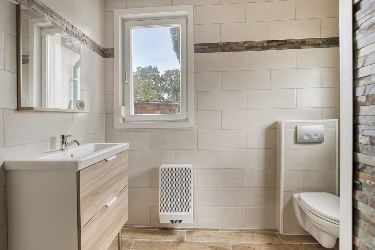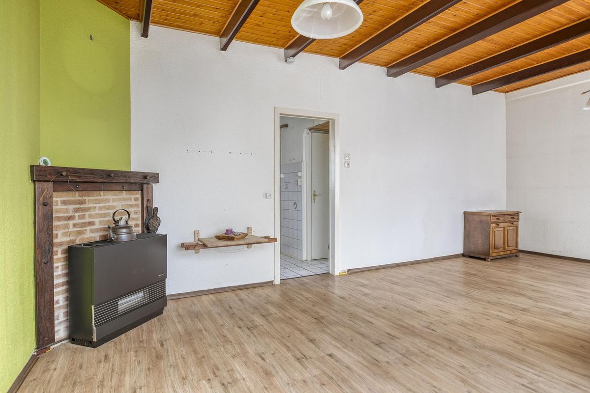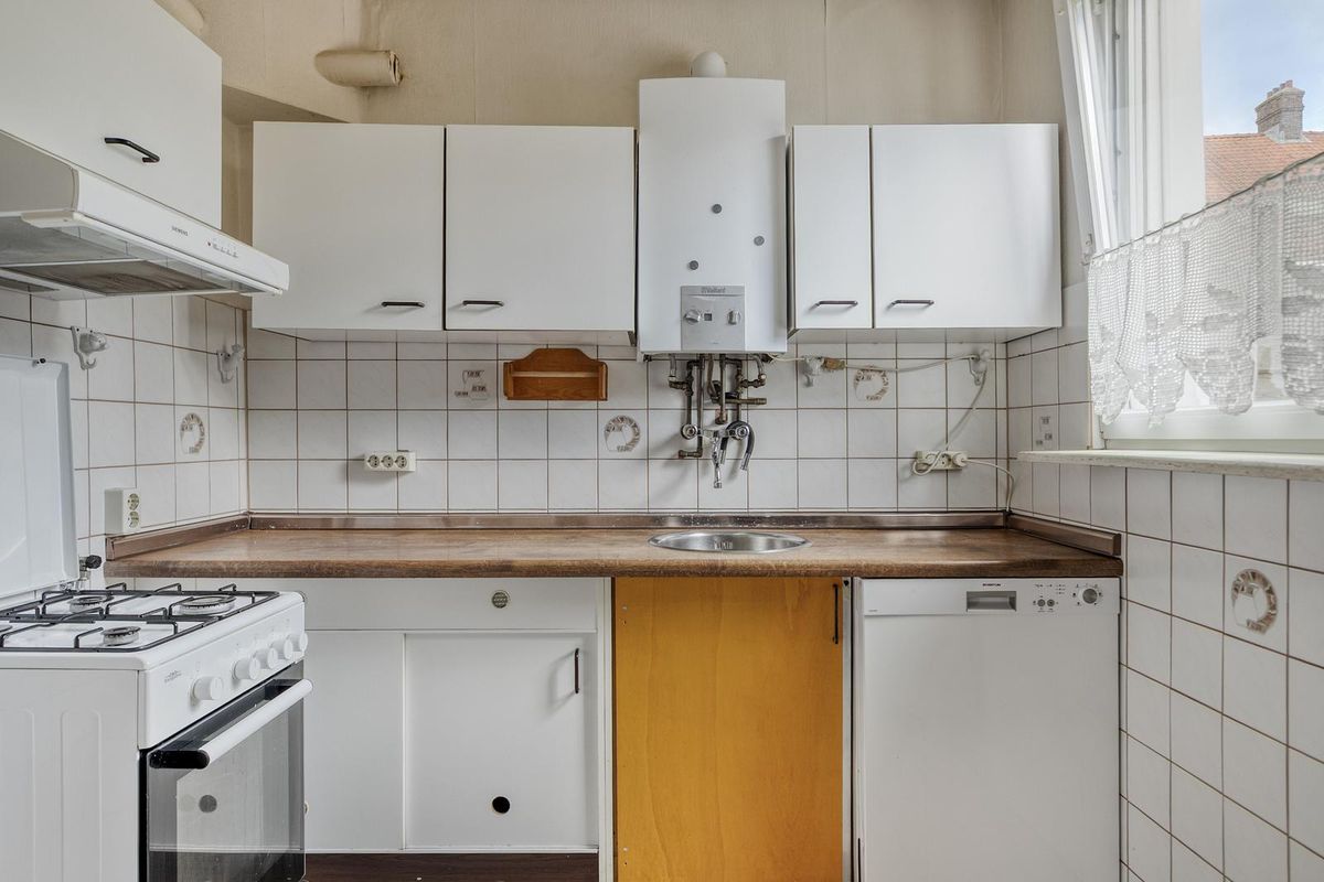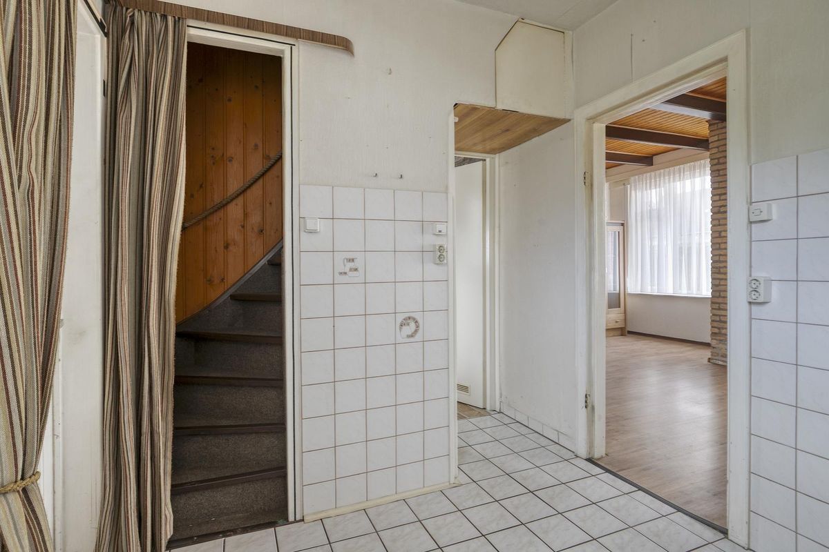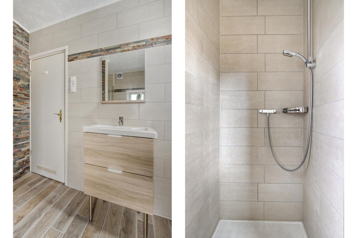 Wanneer je binnenstapt kom je in de hal met meterkast, vanwaar je direct de woonkamer bereikt. Vanuit de woonkamer loop je door naar de dichte keuken, eenvoudig en praktisch ingedeeld in rechte opstelling. Vanuit hier heb je toegang tot de trapopgang naar de eerste verdieping én tot de moderne badkamer, geheel vernieuwd in 2025. Deze is uitgerust met een douchecabine, wastafel met meubel, spiegelkast en toilet. Ook is er een directe doorgang naar de tuin, die met eigen achterom bereikbaar is.