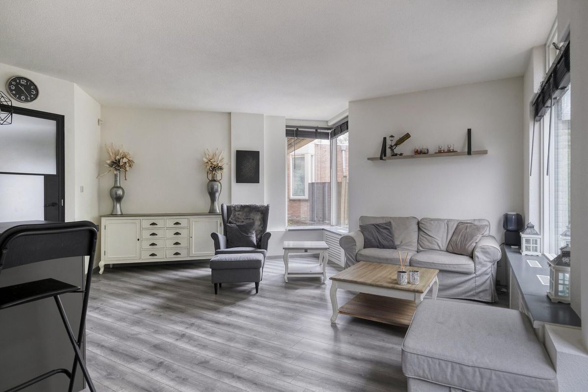 Via de hal heb je toegang tot het toilet, een trapkast, een kast met de meterkast en cv-installatie, en de trap naar de eerste verdieping. Vanuit de hal kom je in de lichte en gezellige woonkamer met voldoende ruimte voor een comfortabele zithoek.