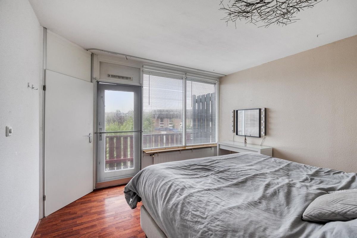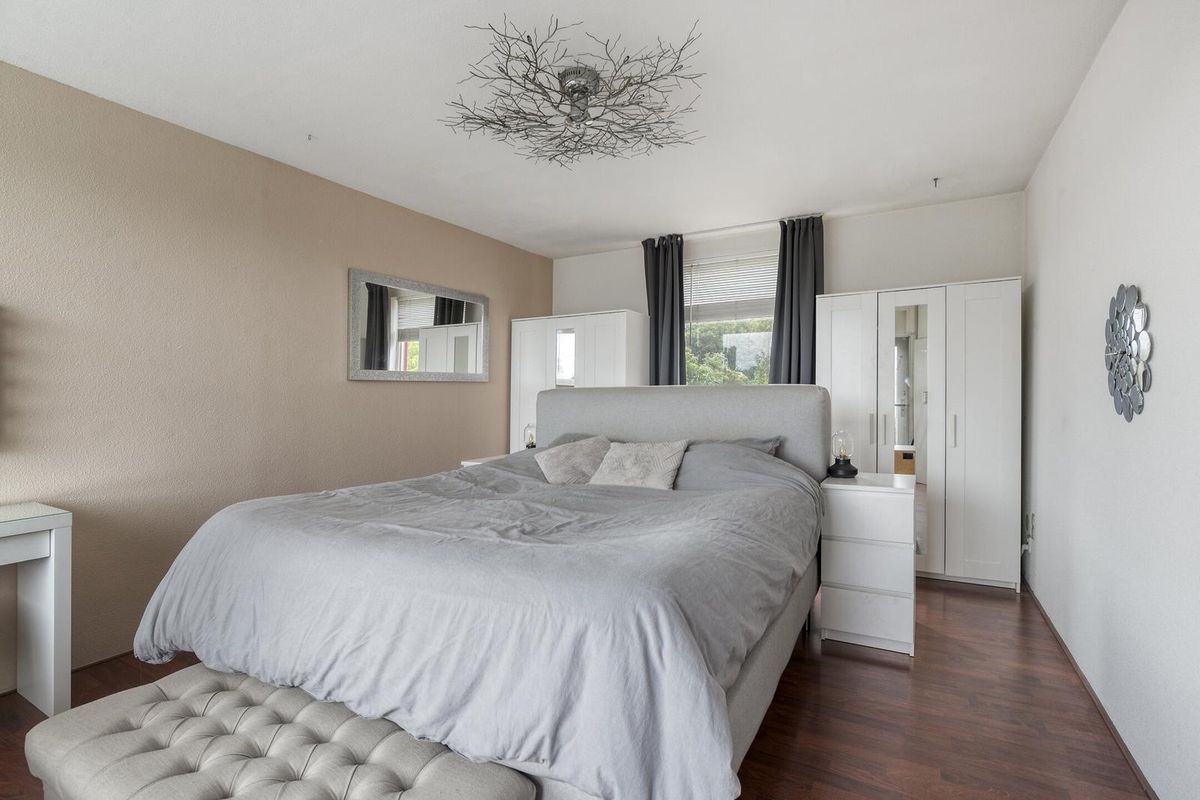 • De hoofdslaapkamer is ruim, beschikt over vrij uitzicht aan zowel de voor- als achterzijde en heeft een balkon op het westen. Hier is voldoende ruimte voor een groot tweepersoonsbed en een kastenwand.