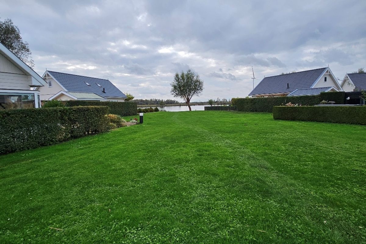 De zonnige tuin rondom het chalet geeft veel privacy en biedt prachtig uitzicht op de rivier de Oude Maas. De tuin is in 2023 opnieuw aangelegd en is onder meer voorzien van terrassen, siergrind, bloemborders en houten schuttingen. De tuin is tevens voorzien van een buitenkraan (warm/koud), buitendouche en elektra.
