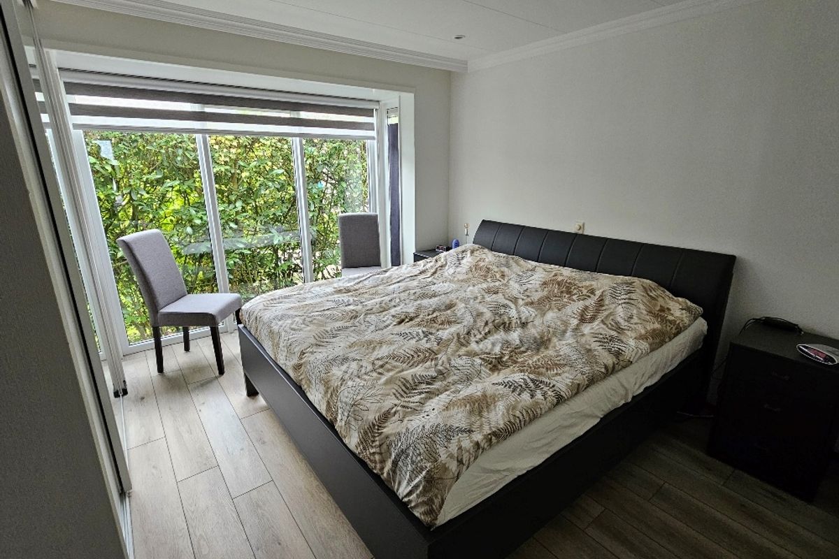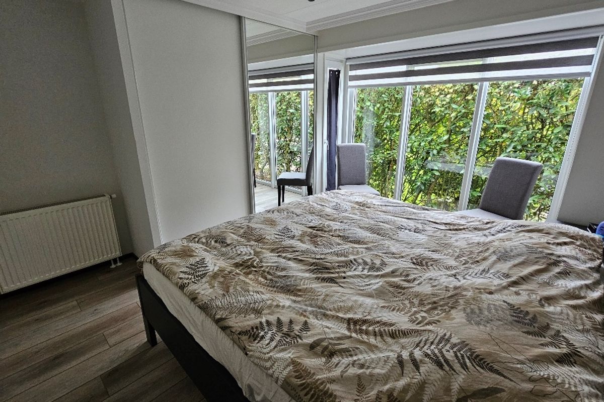 Slaapkamer 1 is gelegen op de begane grond en is voorzien van een vaste schuifwandenkast en een unieke serre-uitbouw hetgeen voor extra ruimte en lichtinval zorgt.
