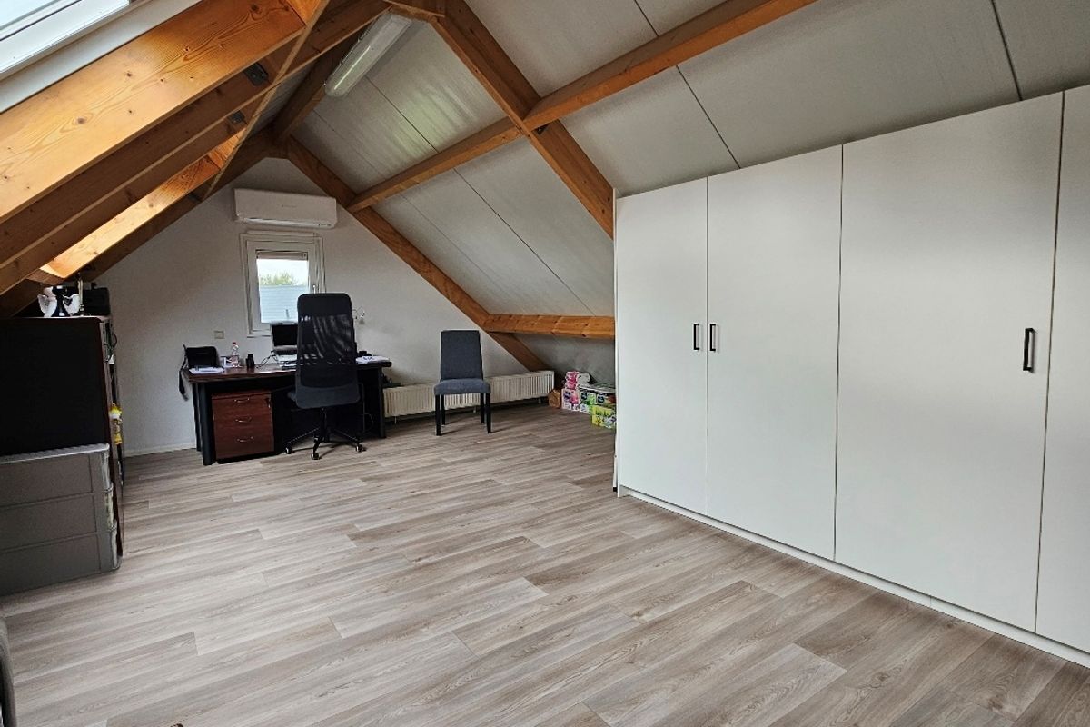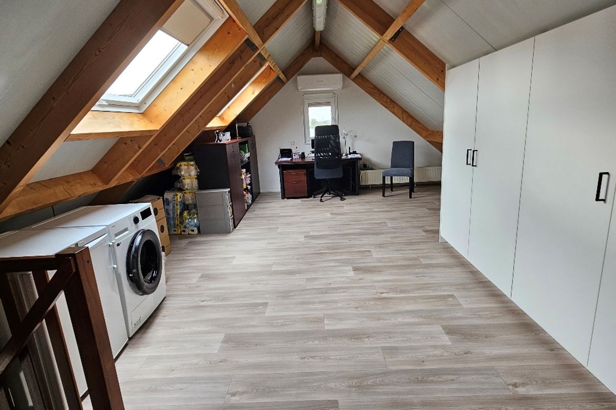 Slaapkamer 1 is gelegen aan de waterzijde en is voorzien van vinyl vloerafwerking (2023), 2 grote kunststof Velux dakramen, airconditioning (2023), praktische vaste kastenwand en centrale verwarming.
