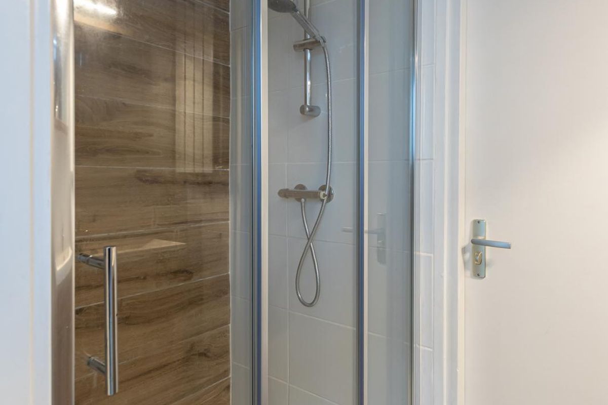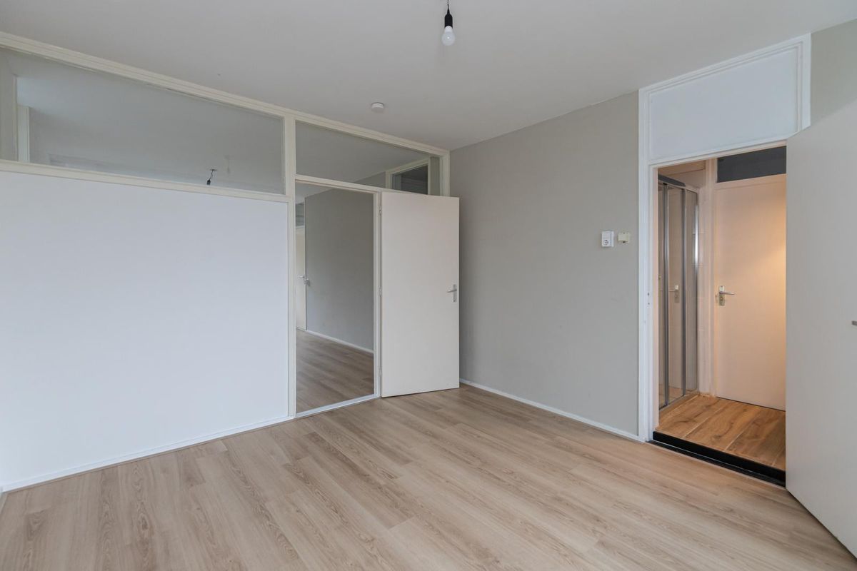 De woonkamer is ruim opgezet en profiteert van veel lichtinval dankzij het extra zijraam. Vanuit de woonkamer is de eerste slaapkamer bereikbaar. Deze grenst direct aan de moderne badkamer, voorzien van een inloopdouche en wastafelmeubel.