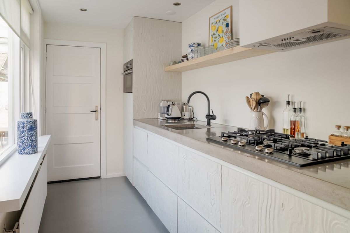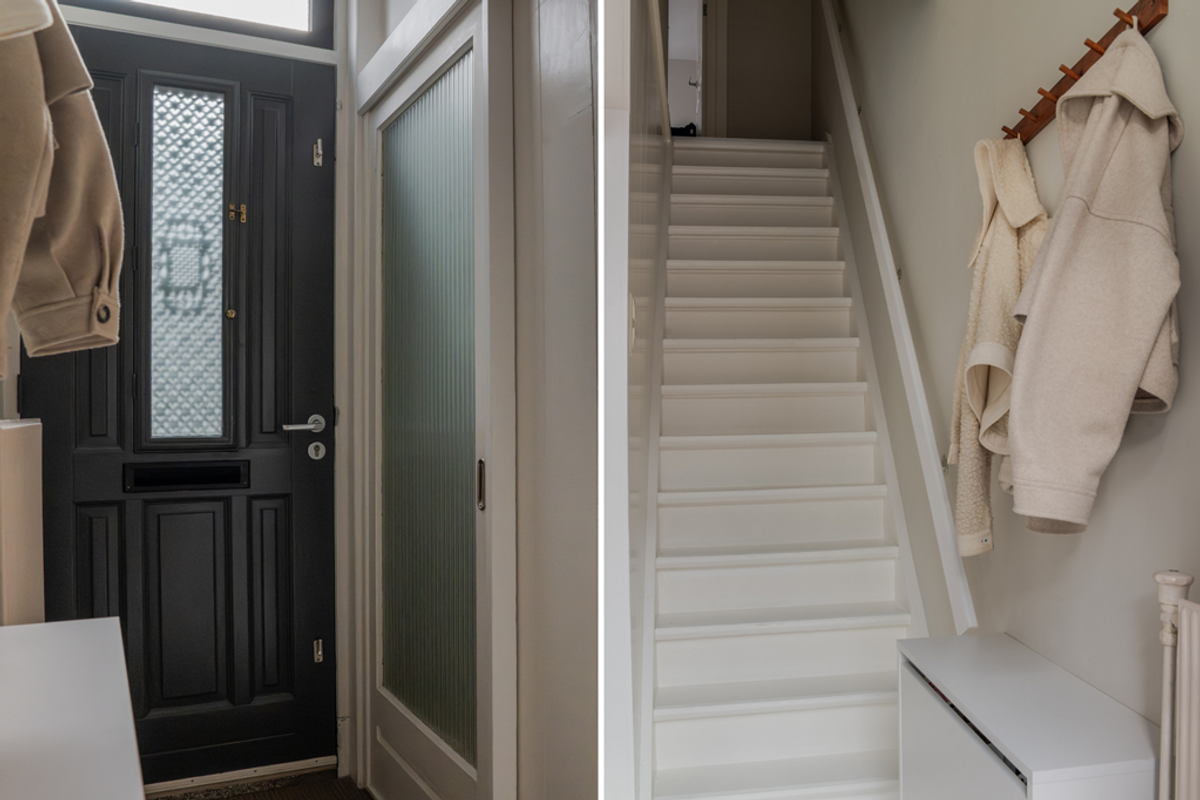 Entree in de hal voorzien van de nette trapopgang en de garderoberuimte. De L-vormige woonkamer heeft aan de voorzijde een karakteristieke erker, waar ook het eetgedeelte is gesitueerd. Het zitgedeelte bevindt zich aan de tuinzijde en biedt toegang tot de riante en droge kelder op stahoogte welke perfect is voor proviand en hobby's. In deze ruimte zijn de meterkast en de omvormer van de zonnepanelen geïnstalleerd. In de uitbouw vind je de keurige toiletruimte met zwevend toilet en een fonteintje. De handgemaakte keuken is uitgerust met een massief betonnen werkblad en diverse inbouwapparatuur als een vaatwasser, koelkast en combi-oven. Net als de keuken is ook de badkamer in de uitbouw gesitueerd en voorzien van een gietijzeren betonlook vloer. Samen met de beton ciré wanden, de houten details, het ligbad, de designradiator en de waskom heeft deze ruimte een moderne uitstraling.