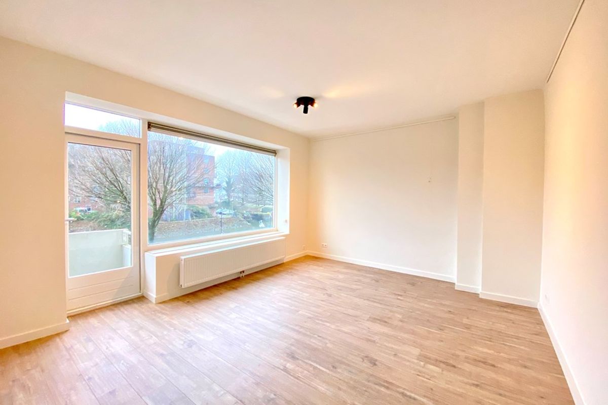 De woonkamer is gelegen aan de voorzijde en biedt, net als een van de slaapkamers, toegang tot het balkon.