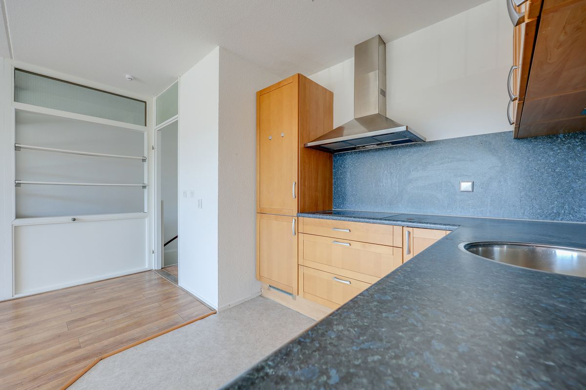 Op de bovenverdieping vind je een lichte en royale woonkamer, waar grote raampartijen zorgen voor veel natuurlijk licht. De woonkamer biedt voldoende ruimte voor een comfortabele zithoek en een grote eettafel. Via de woonkamer stap je het balkon aan de rustige achterzijde op, gelegen op het noordwesten – een heerlijke plek om overdag én ’s avonds van de zon en het vrije uitzicht te genieten.