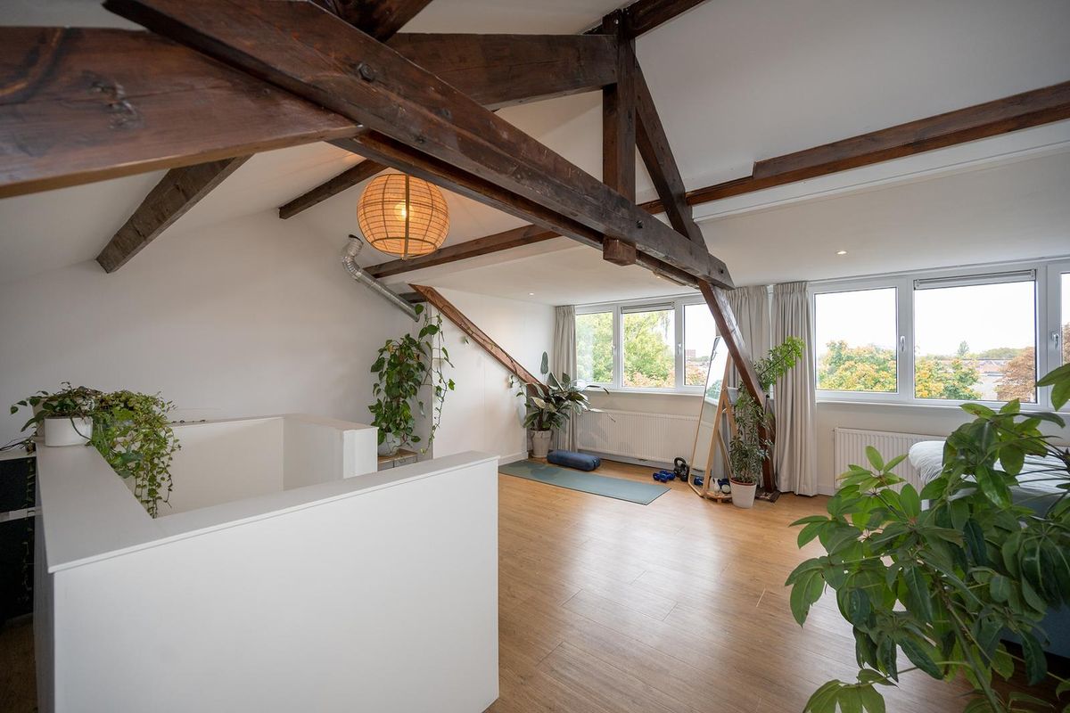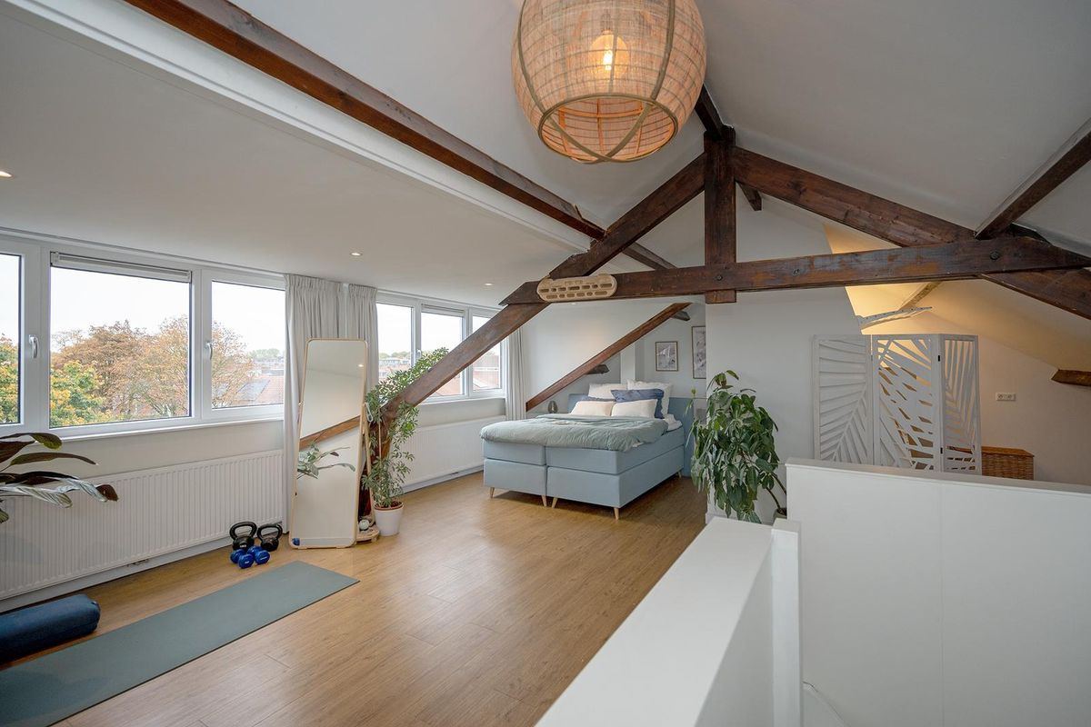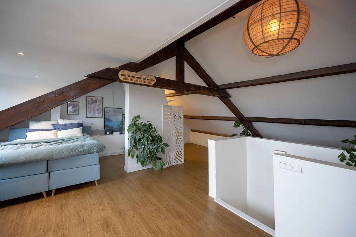 De tweede verdieping is een grote, open zolderruimte met veel mogelijkheden. Hier bevindt zich momenteel een ruime slaapkamer, maar de ruimte leent zich uitstekend om naar eigen wens in te delen. Denk bijvoorbeeld aan het creëren van twee slaapkamers en een aparte wasruimte of badkamer, de aansluitingen voor de wasmachine zijn reeds aanwezig. Dankzij de schuine kap en de karakteristieke dakkapel met houten balken is dit een sfeervolle verdieping met veel potentie.