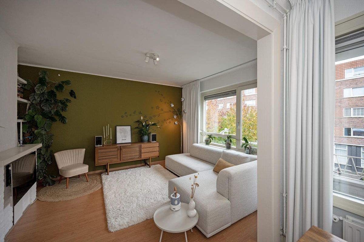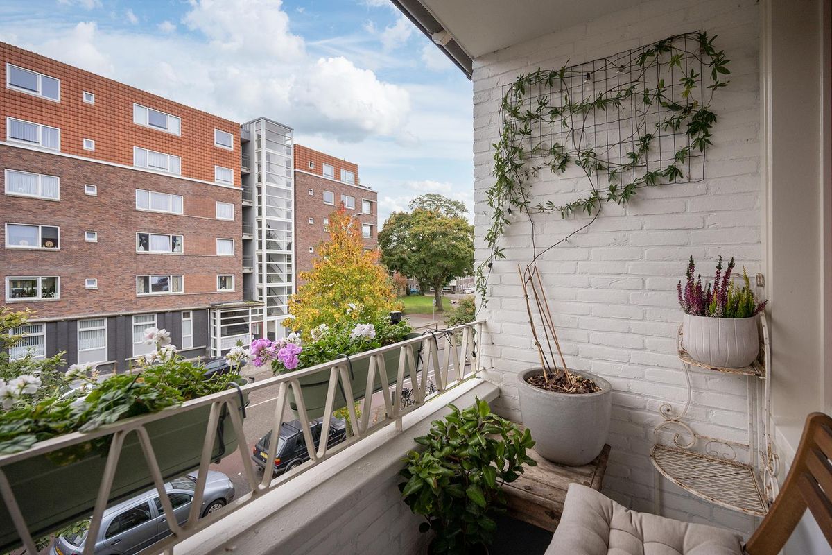 Je komt binnen in de gang die toegang biedt tot alle vertrekken in de woning. Aan de voorzijde vind je de lichte woonkamer met grote ramen die zorgen voor een prettige lichtinval gedurende de dag. De woonkamer biedt voldoende ruimte voor een gezellige zithoek en eethoek. De moderne, gerenoveerde (2020) badkamer is ingericht met een ruime inloopdouche en eigentijdse afwerking. De keuken is praktisch ingericht en biedt toegang tot het balkon uitkijkend op tuinen, een oase van rust in de stad gelegen op het zuid/zuidwesten. Verder zijn er twee slaapkamers: één knusse slaapkamer en een tweede kamer die momenteel is ingericht als kleedkamer, ideaal als walk-in closet, werkkamer of babykamer.