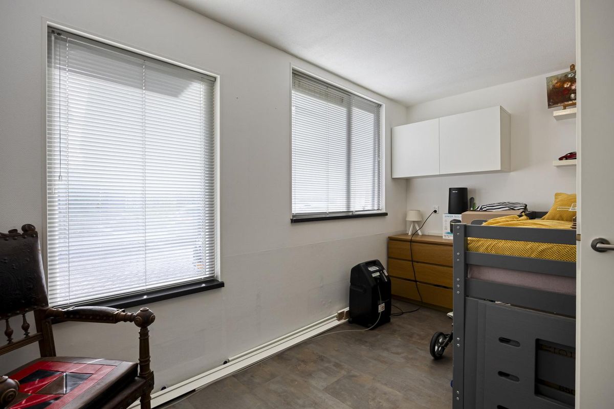De hoofdslaapkamer is gelegen aan de achterzijde en heeft een deur naar de tuin. De vloer is voorzien van PVC.
