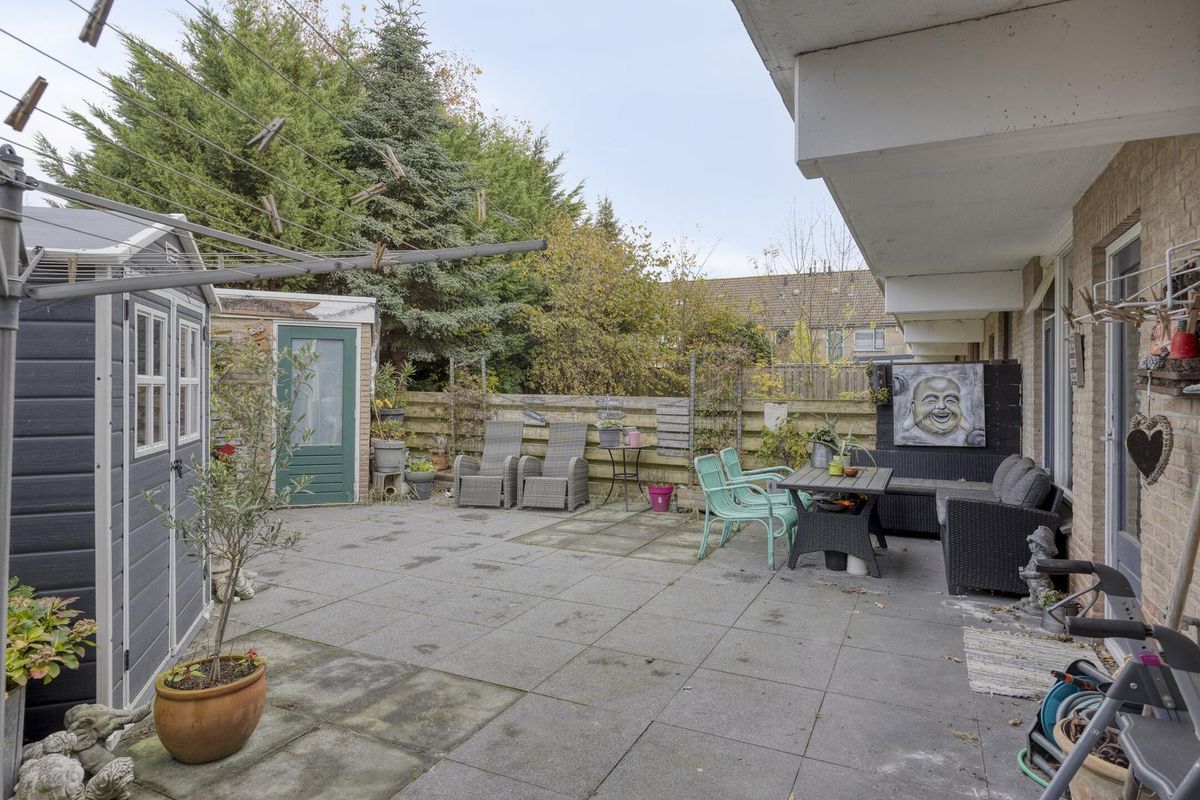 De tuin op het noorden is te bereiken via de deuren in de woonkamer en slaapkamer. De onderhoudsvrije tuin is v.v. grote terrastegels. Achterin de tuin staan een vrijstaande stenen berging welke is v.v. elektra en een extra kunststof berging. De tuin beschikt over een achterom.