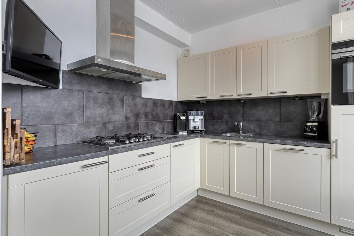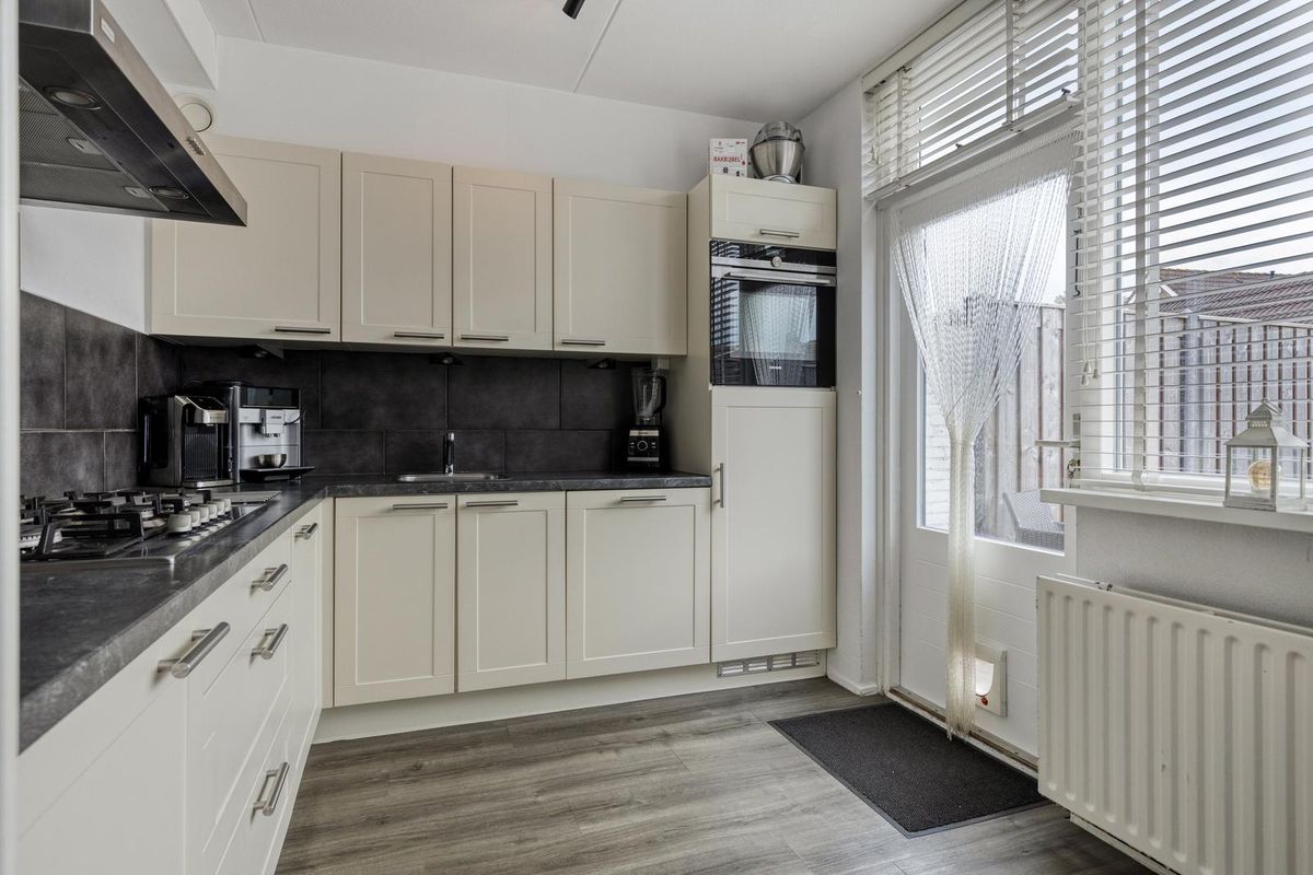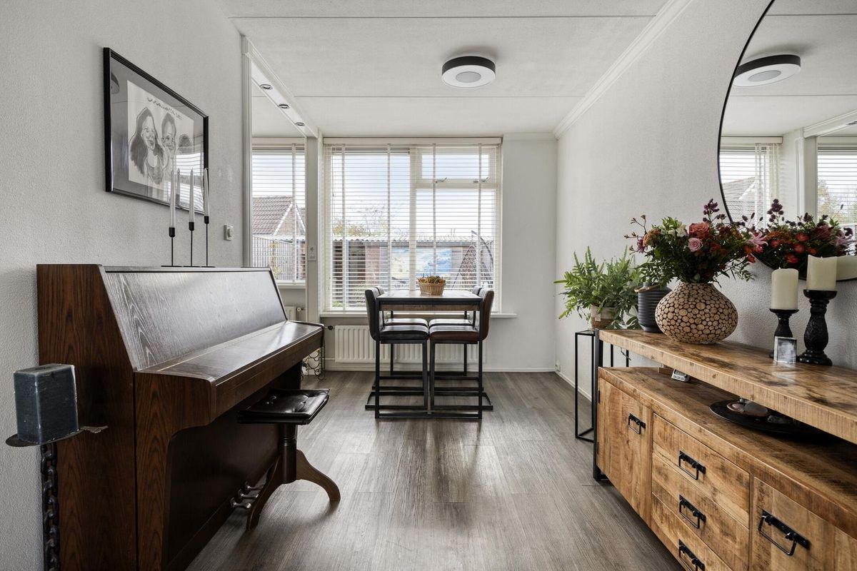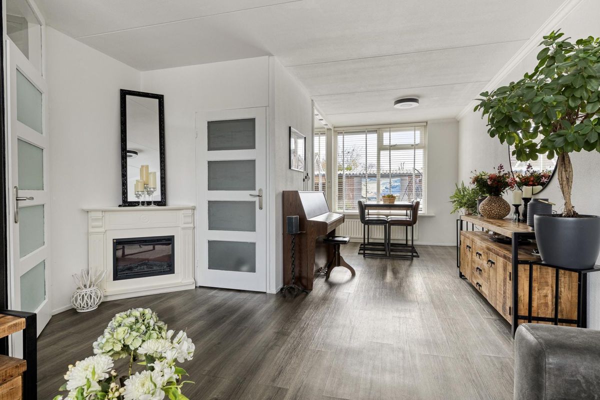 Door de luifel aan de voorzijde kom je overdekt de hal binnen met moderne meterkast, toiletruimte en de deur naar de woonkamer. De woonkamer is mooi langgerekt en biedt volop plek voor zowel een ruime zit- als eethoek. Een leuk detail is het extra raam in de zijgevel waardoor je naast meer lichtinval ook meer zicht naar buiten hebt vanuit je zithoek. Aan de achterzijde bevindt zich de keuken met 5-pits gaskookplaat, afzuigkap, vaatwasser, koelkast en combi-oven. Vanuit de keuken is de recent aangelegde achtertuin toegankelijk.