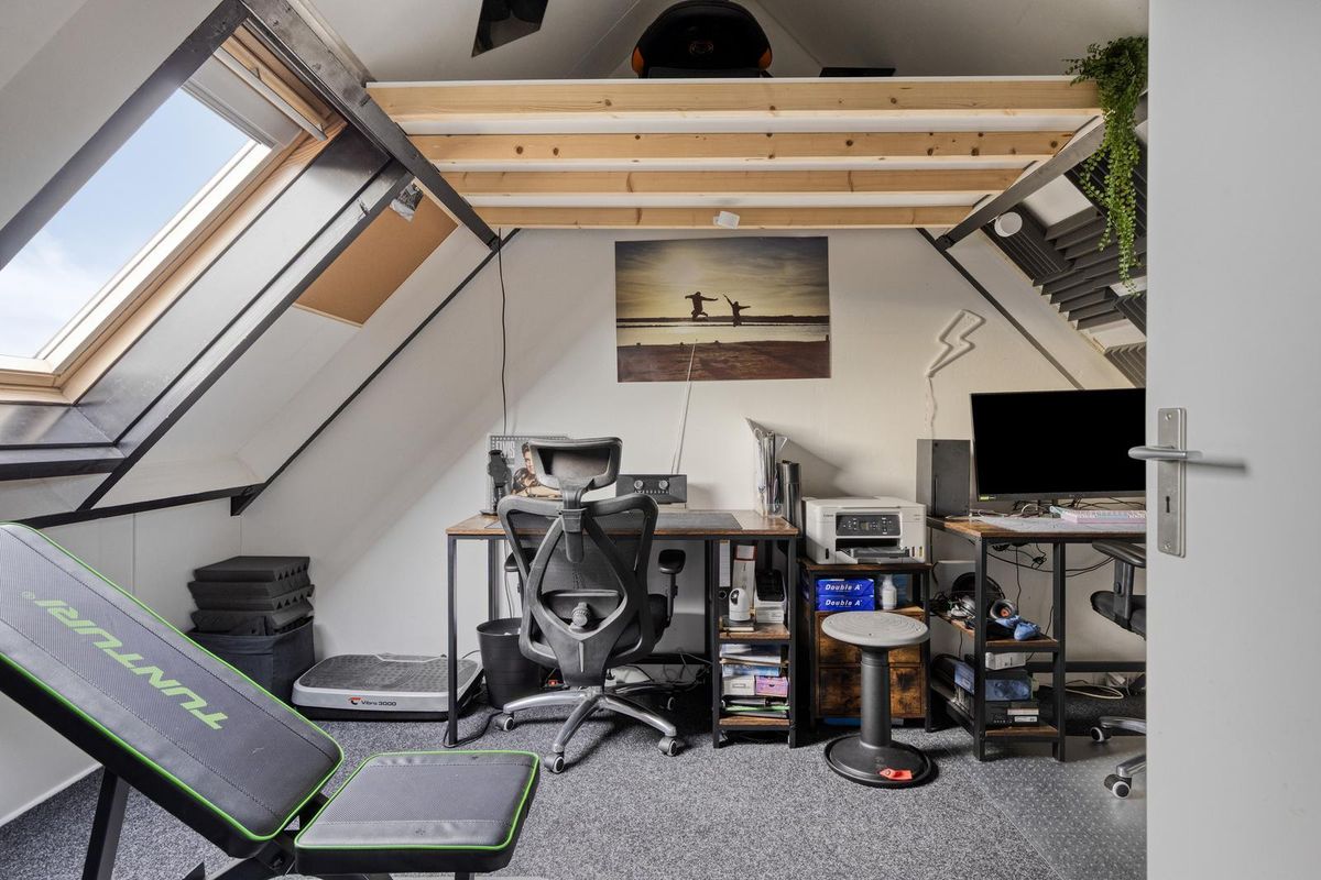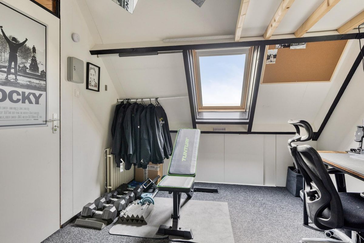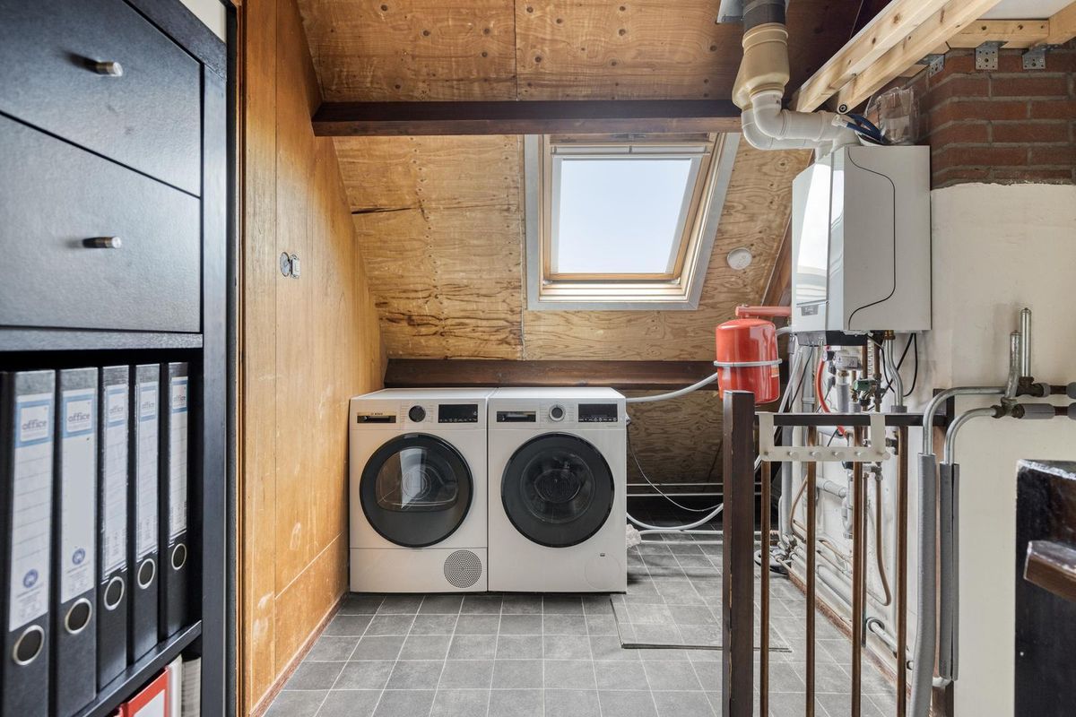 Ook de tweede etage is met een vaste trap bereikbaar en hier vinden we op de overloop de witgoedaansluitingen en Cv-opstelling. Hier vinden we nog een volwaardige vierde slaapkamer met vliering.