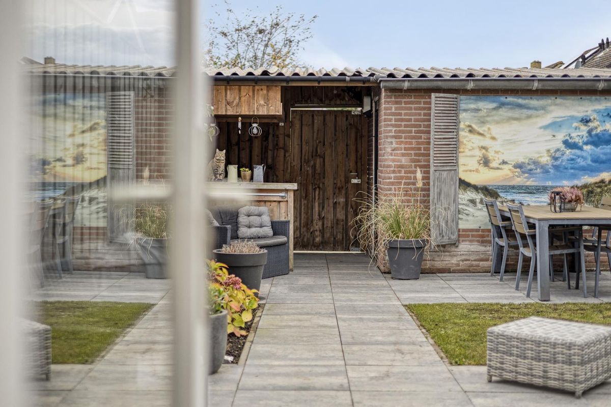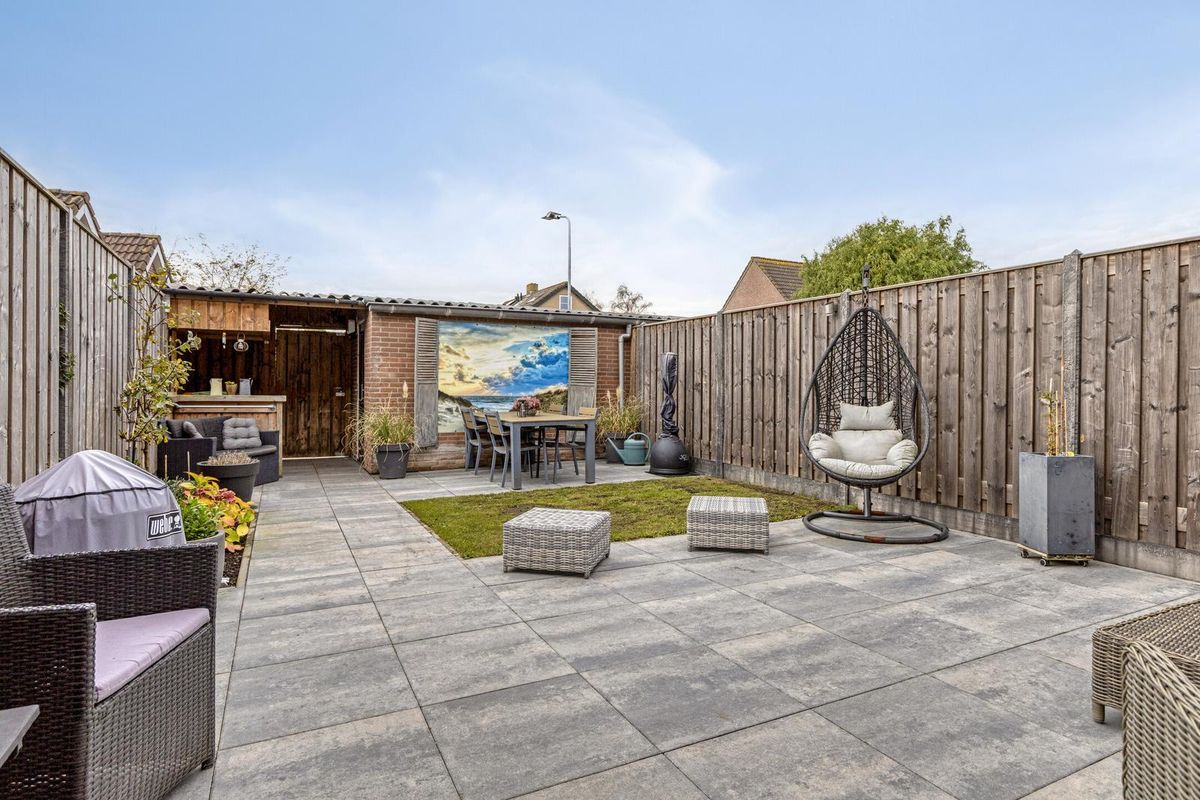 De achtertuin ligt op het gunstige zuidwesten met een groot terras direct achter de woning waar je heerlijk van de zon geniet. Aangrenzend aan het pad is er aan de ene kant een gazon en aan de andere kant een border voor het nodige groen. Achterin is er een tweede terras waar je in de ochtend van de zon geniet óf juist later op de dag de schaduw opzoekt. Helemaal achterin is er een veranda met aangrenzend de berging voor de fietsen en tuinspullen. Tot slot is er een vrije achterom door de poort aan de achterzijde.