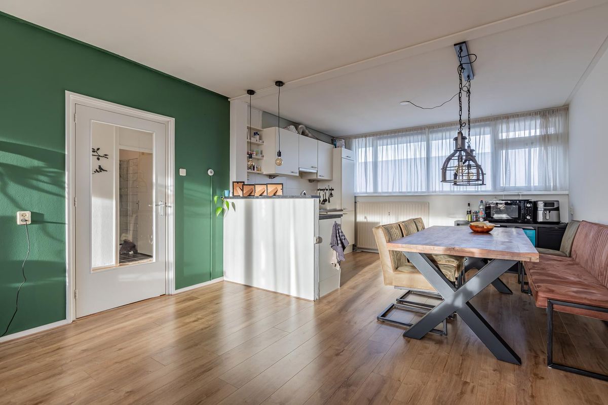 Via de entree/hal met een moderne meterkast bereikt u de ruime woonkamer 27m2 met een laminaat vloer en een schuifdeur naar het balkon op het zuidwesten. Via de woonkamer bereikt u de keukenopstelling welke voorzien is van diverse inbouwapparatuur, waaronder een vaatwasmachine, koelkast, vriezer inbouw en gasfornuis met een afzuigkap.