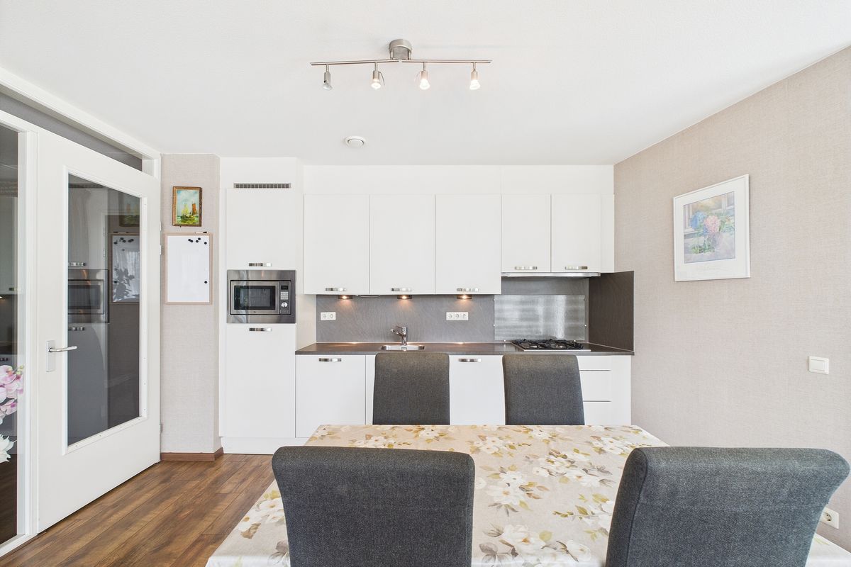 inbouwapparatuur, waaronder een kookplaat, afzuigkap, koelkast en vaatwasser. Vanuit de woonkamer heeft u toegang tot beide balkons, de bergruimte en de slaapkamer.
