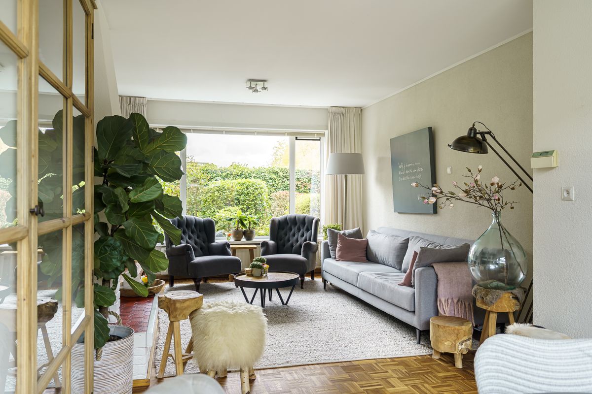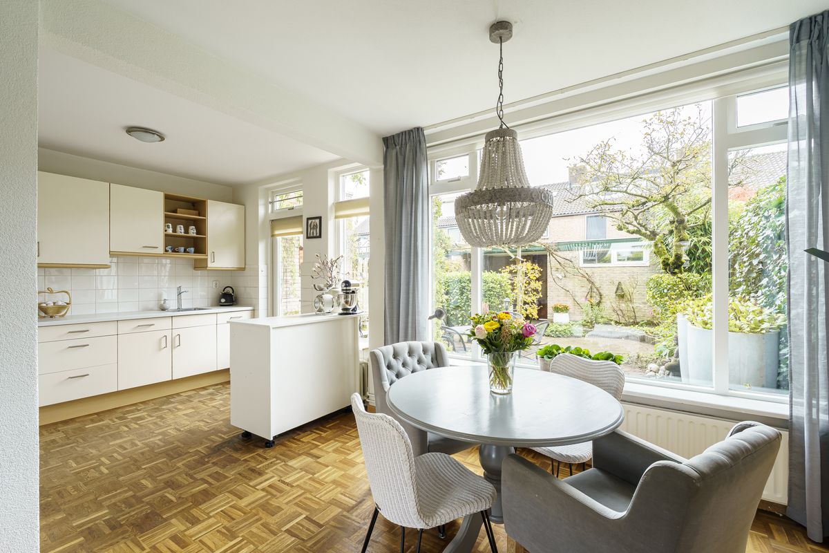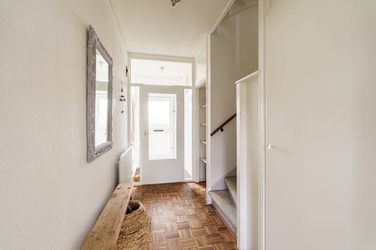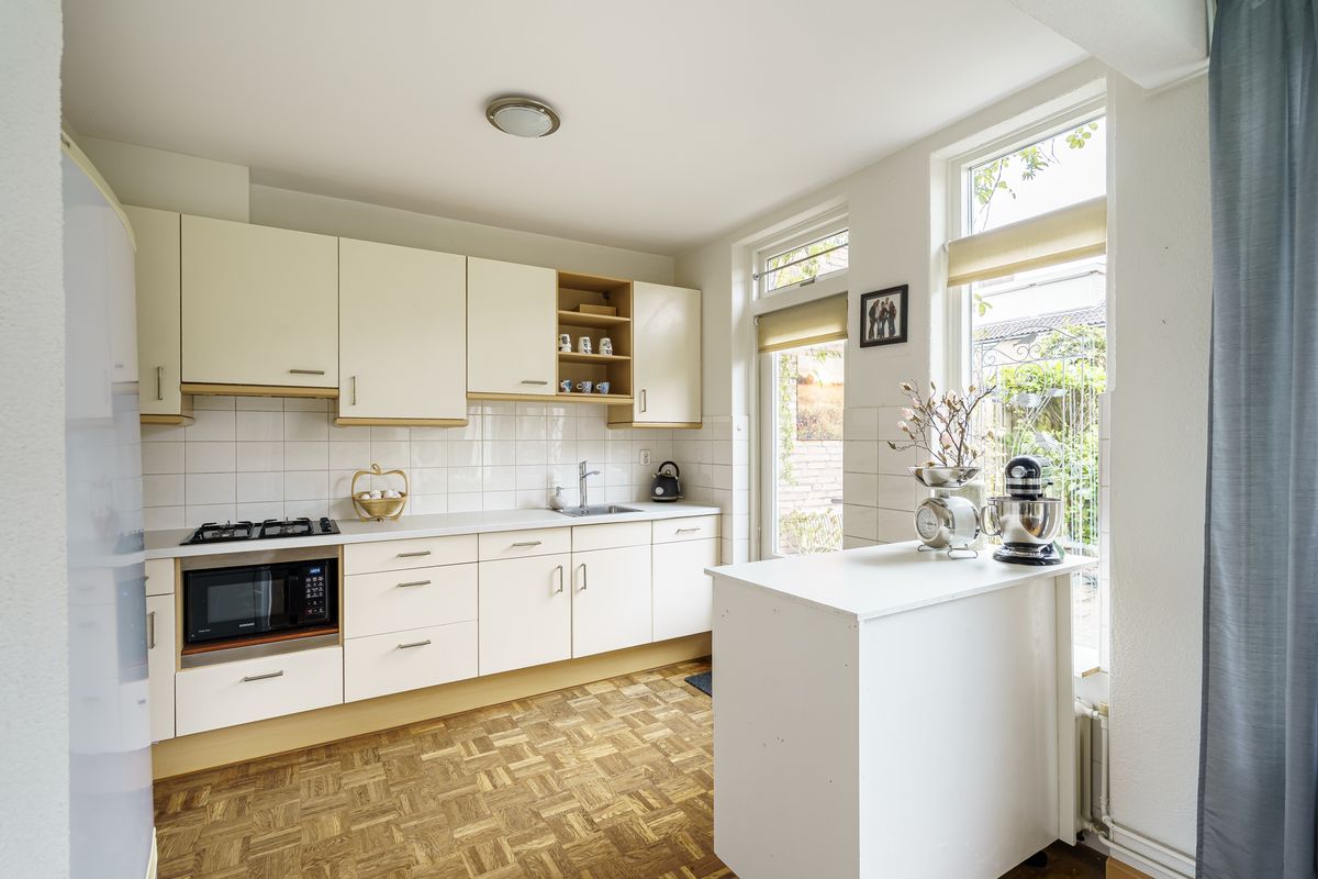 Via de ruime voortuin kom je binnen in de vestibule met toilet en doorgang naar de hal met trapopgang en handige bergkasten. De lichte doorzonwoonkamer met sfeervolle gashaard biedt volop ruimte voor een gezellige zithoek en een grote eettafel. De halfopen keuken aan de achterzijde is voorzien van een gaskookplaat, afzuigkap en vaatwasser en biedt toegang tot de achtertuin.