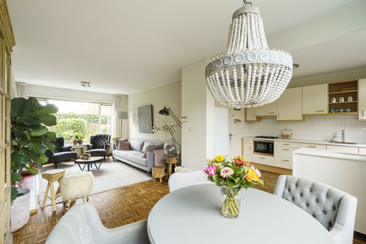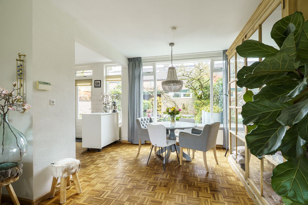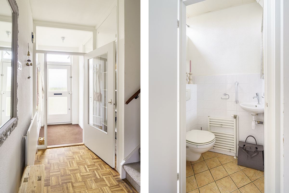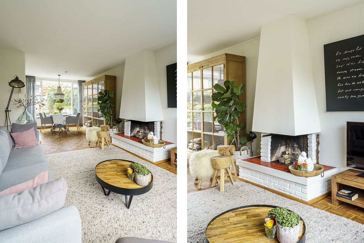 Via de ruime voortuin kom je binnen in de vestibule met toilet en doorgang naar de hal met trapopgang en handige bergkasten. De lichte doorzonwoonkamer met sfeervolle gashaard biedt volop ruimte voor een gezellige zithoek en een grote eettafel. De halfopen keuken aan de achterzijde is voorzien van een gaskookplaat, afzuigkap en vaatwasser en biedt toegang tot de achtertuin.