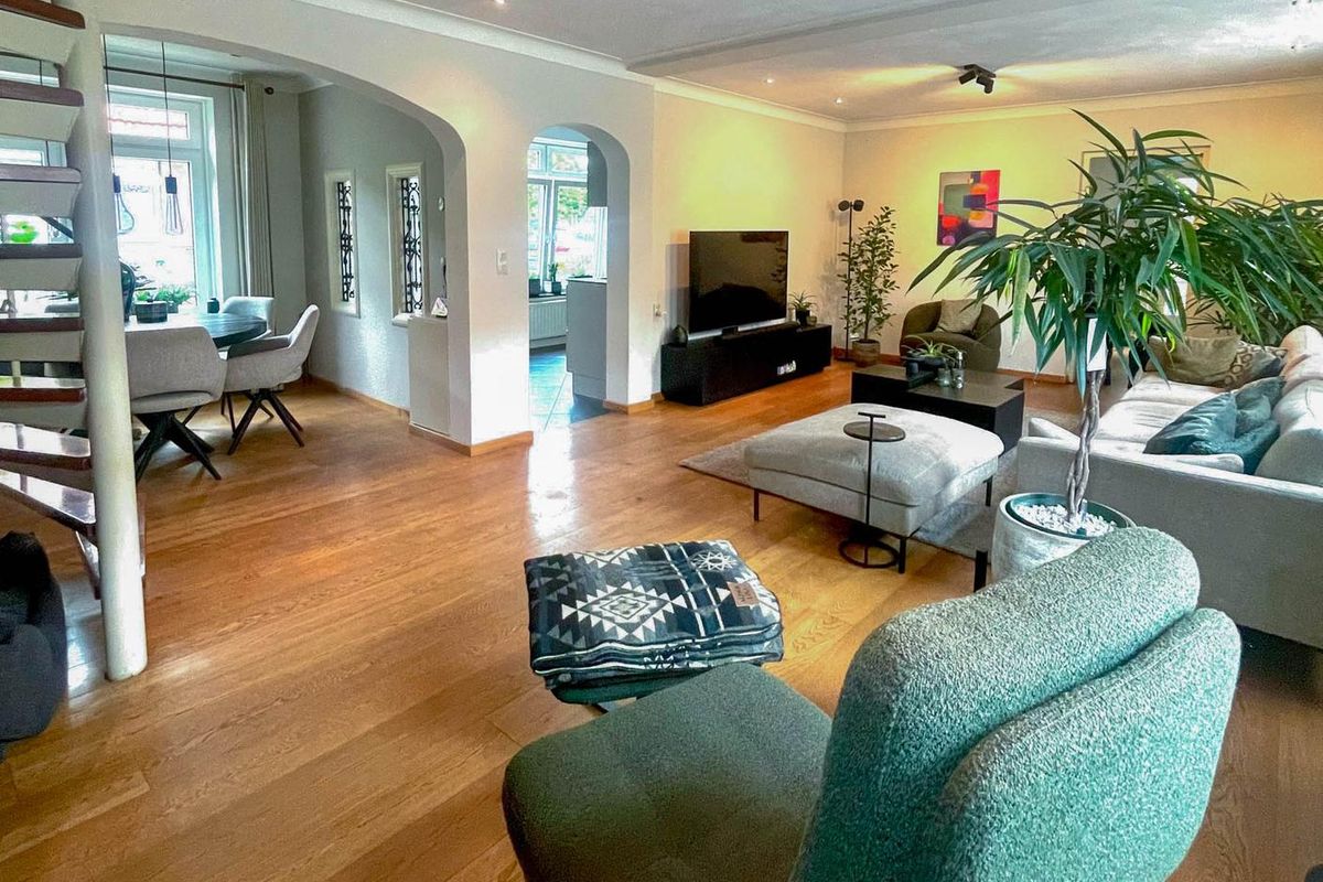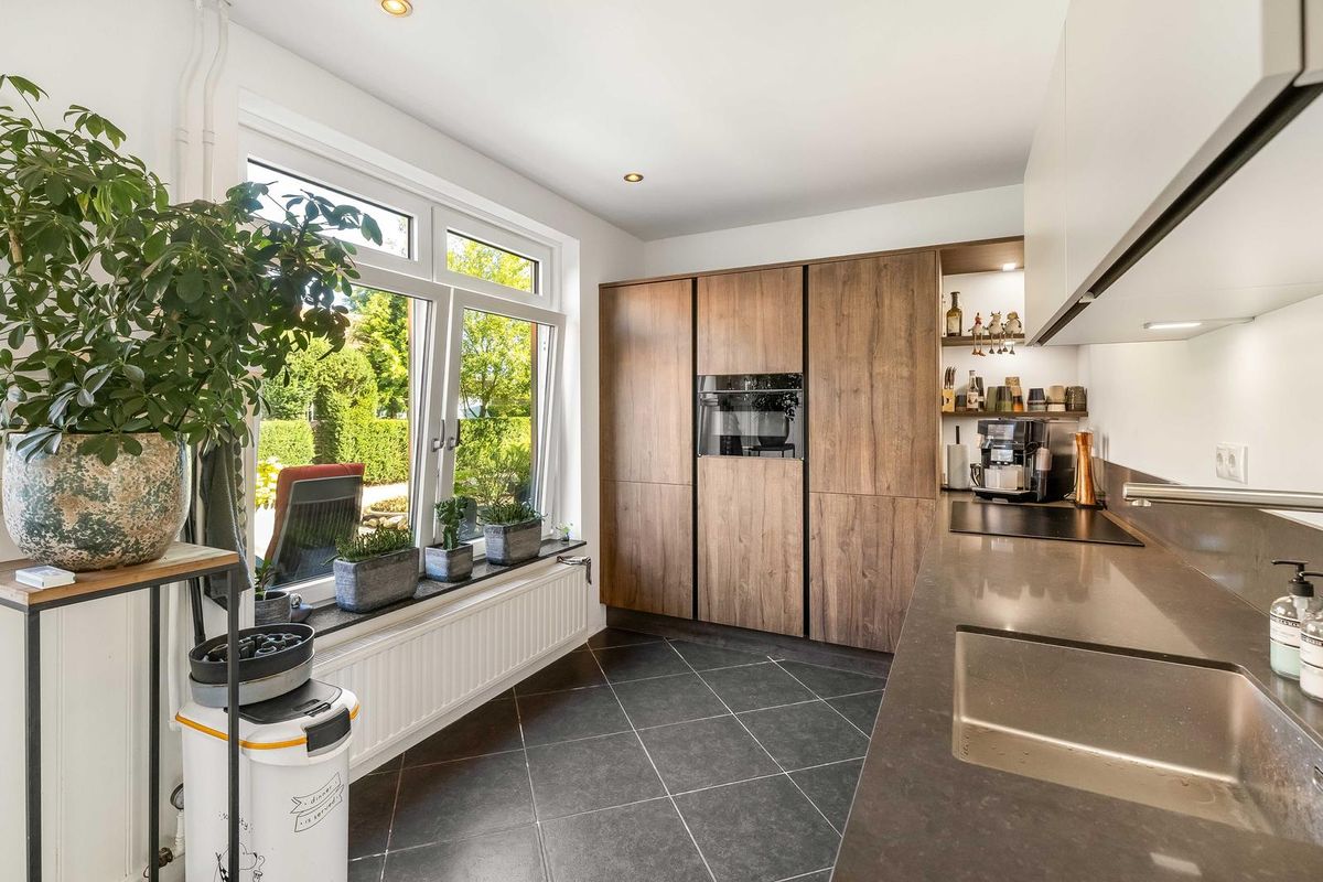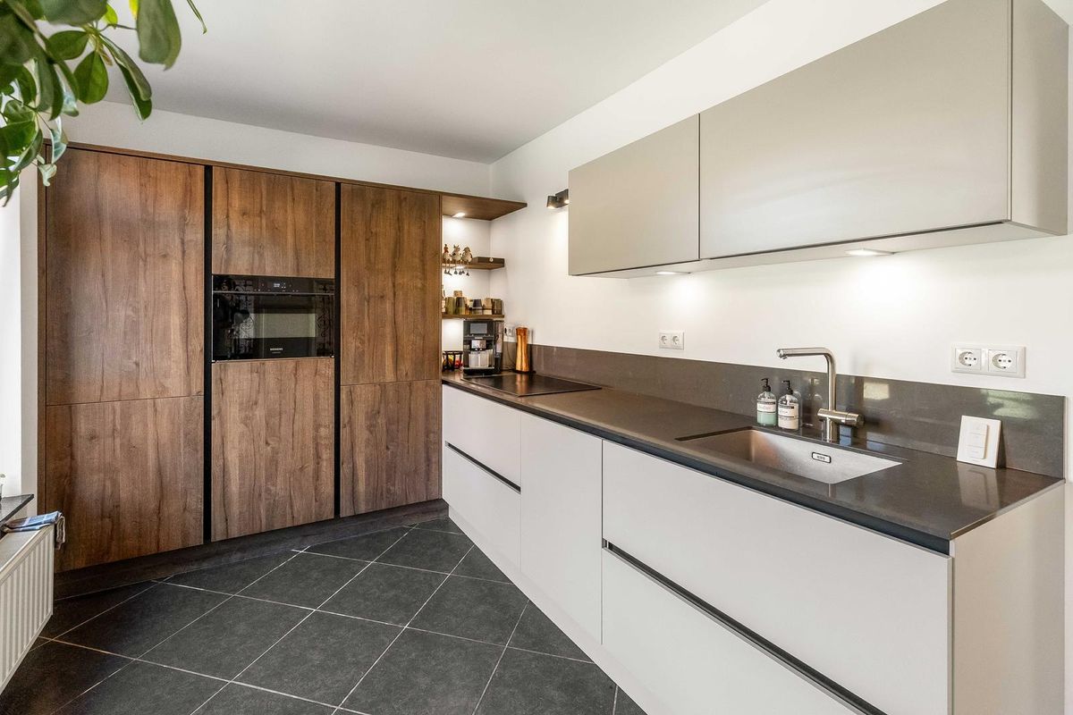 Deze zeer lichte ruimte is uitgerust met een luxe keuken (2024) in hoekopstelling met composiet werkblad, voorzien van een inductiekookplaat met geïntegreerde afzuiging (Bora), vaatwasser, grote koelkast, combi-oven en vriezer, De keukenapparatuur is van kwaliteitsmerk Siemens studioLine.