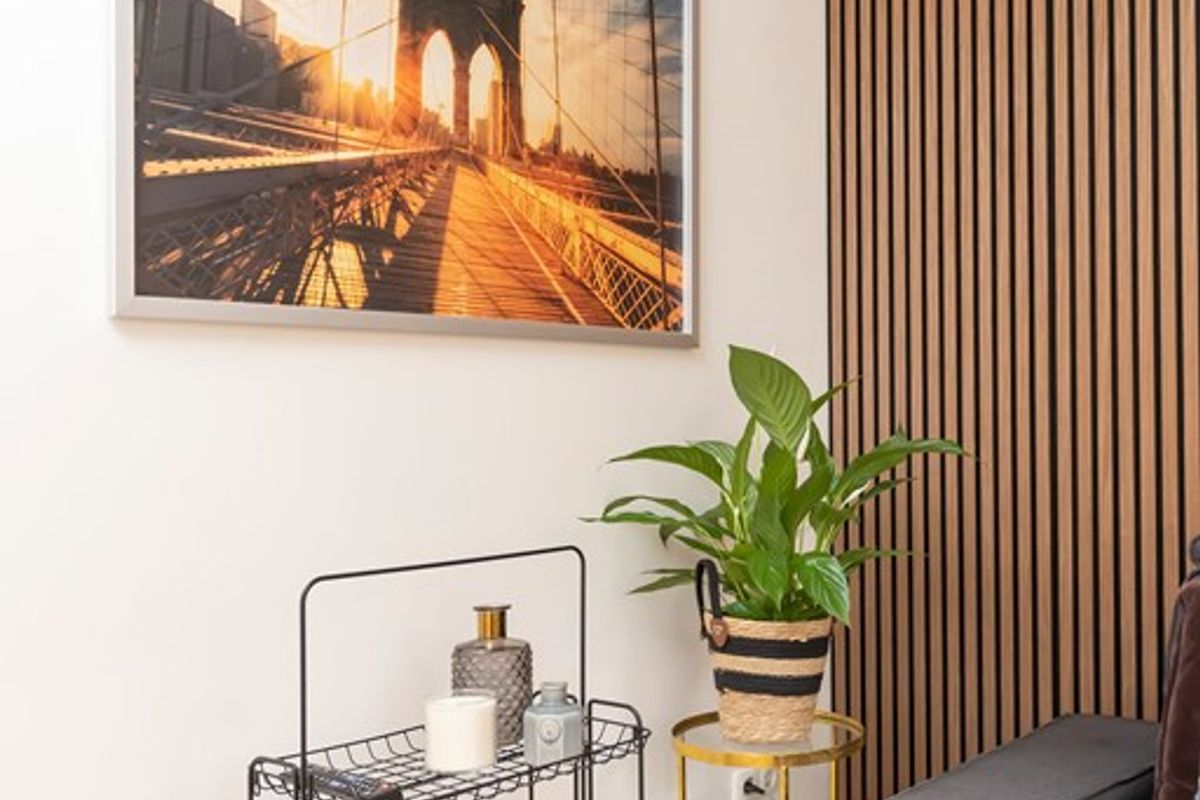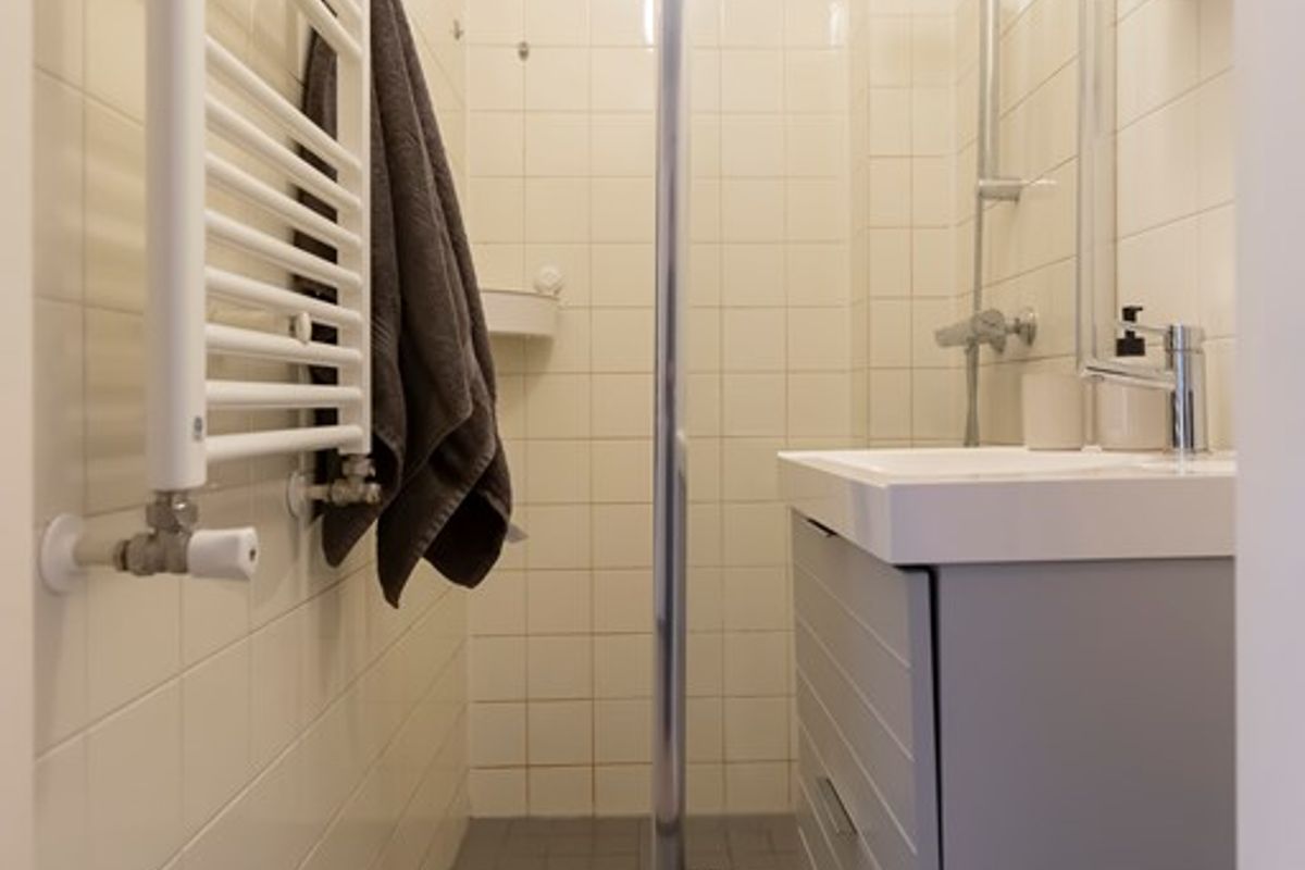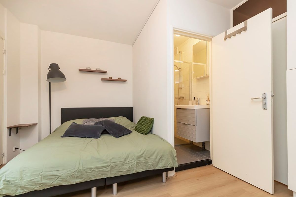 The bedroom is quietly located at the rear of the apartment. There is a new boxspring bed. The bedroom has a spacious and sunny roof terrace where you can have a coffee, read or have a drink.