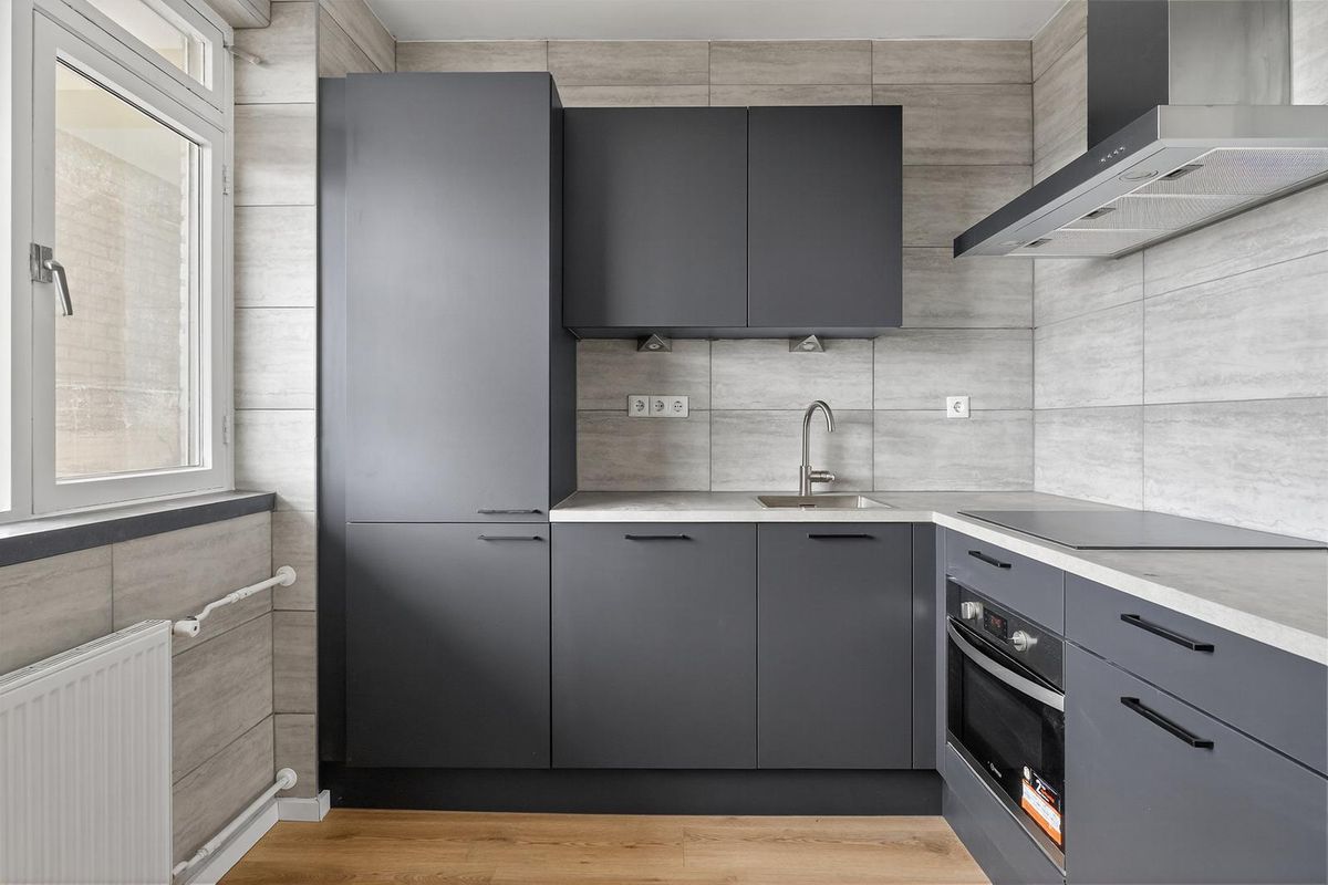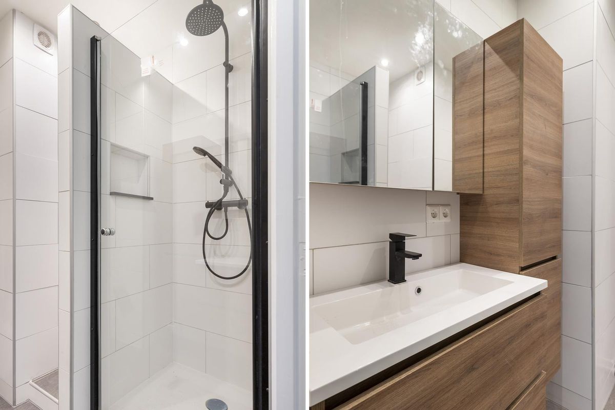 Centraal in het appartement is de alkoof badkamer aanwezig welke recentelijk compleet vernieuwd is. De betegelde badkamer beschikt over een comfortabele inloopdouche, wastafelmeubel en handdoekradiator.