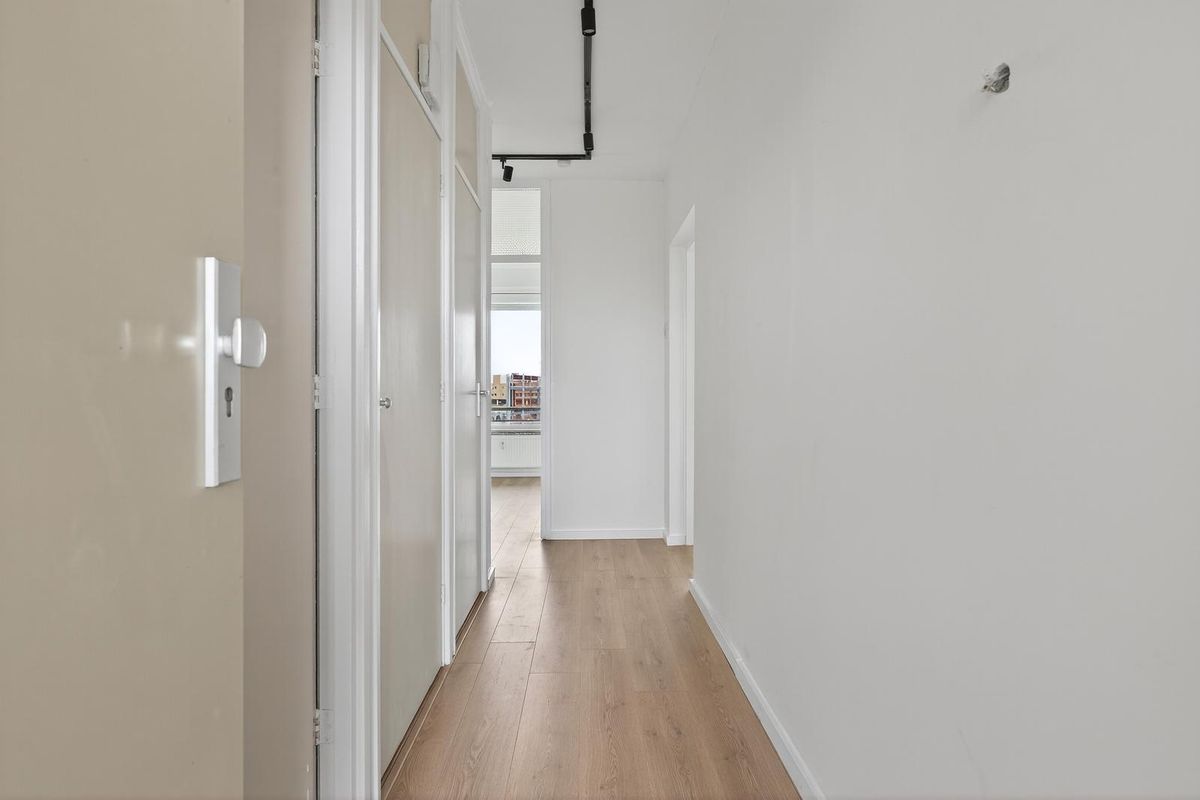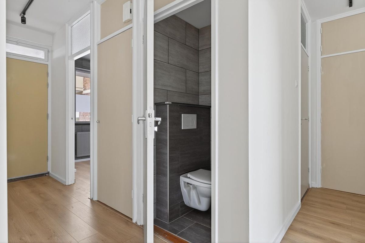 Via de langgerekte L-vormige hal met meterkast, netjes afgewerkt en vernieuwde toiletruimte zijn alle verdere vertrekken te bereiken. Ook tref je in de hal een vaste kast met de aansluiting voor de wasapparatuur.