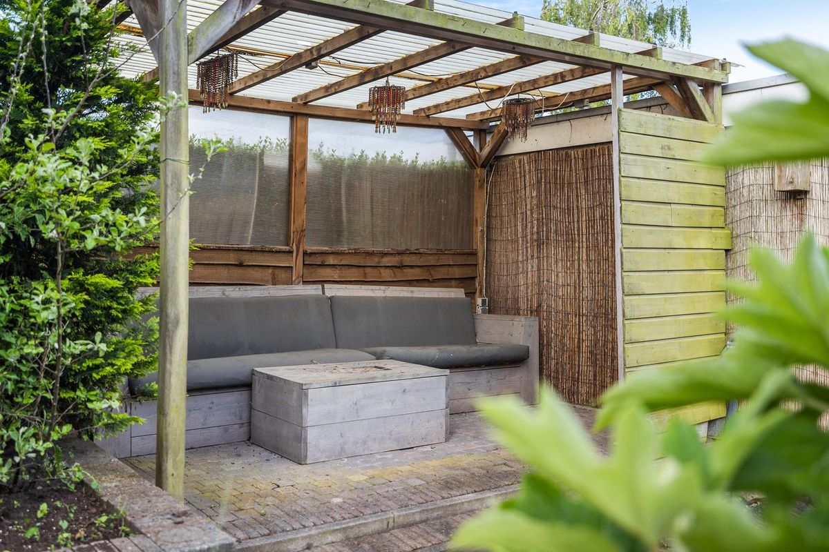 De op het noordwesten gelegen achtertuin is sfeervol ingericht met diverse beplanting, een terras, overkapping en vrijstaande stenen berging. De tuin is tevens bereikbaar via een achterom.