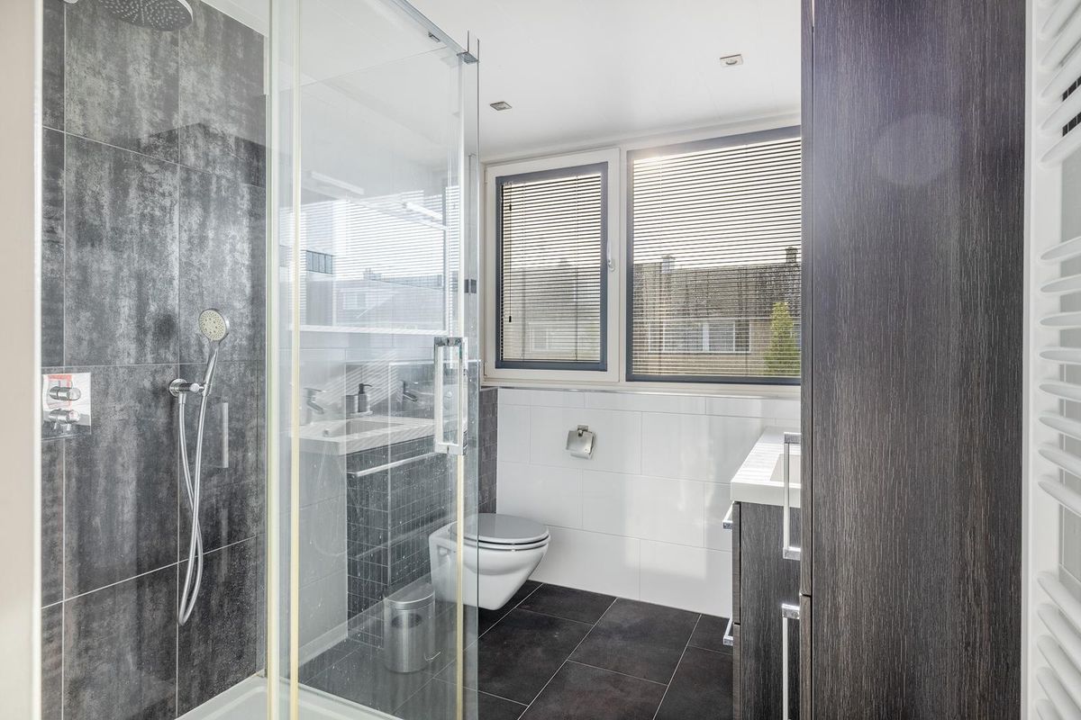 De badkamer is uitgerust met een inloopdouche, dubbele wastafel met meubel en een tweede toilet.