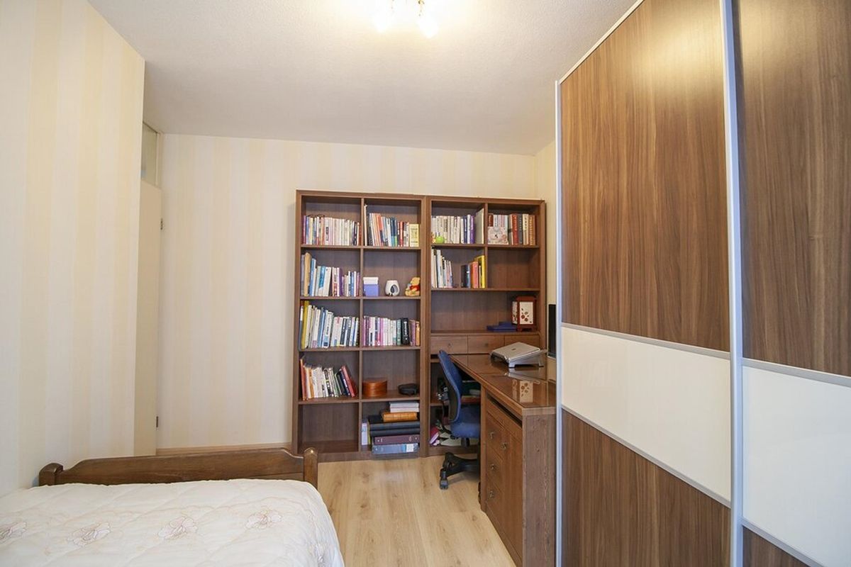 The first floor can be reached via the stairs in the hall. This floor has 3 bedrooms and a bathroom. The bathroom has a shower cabin, bath, sink and toilet. The master bedroom is located at the rear and has a double bed and a spacious wardrobe. The second bedroom is delivered empty and the third bedroom has a desk, single bed and big wardrobe. On the top floor there is a spacious bedroom. The washingmachine and dryer are also located on this floor.