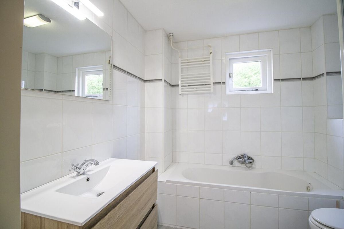 Via de trap in de hal is de eerste verdieping te bereiken. Deze verdieping heeft 3 slaapkamers en een badkamer. De badkamer is voorzien van een douchecabine, ligbad, wastafel en toilet. De grote slaapkamer is aan de achterzijde gelegen en beschikt over een tweepersoonsbed en ruime kledingkast. De tweede slaapkamer wordt leeg opgeleverd en de derde slaapkamer is voorzien van een bureau, ruime kledingkast en eenpersoonsbed.