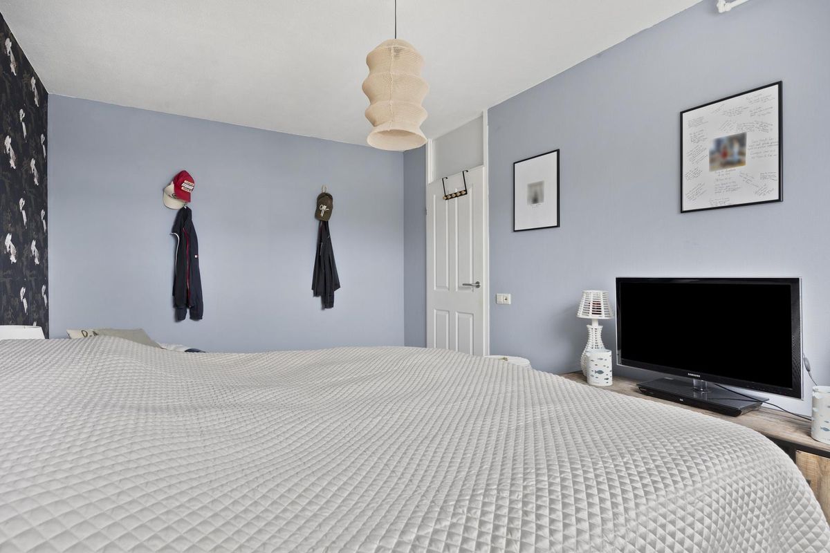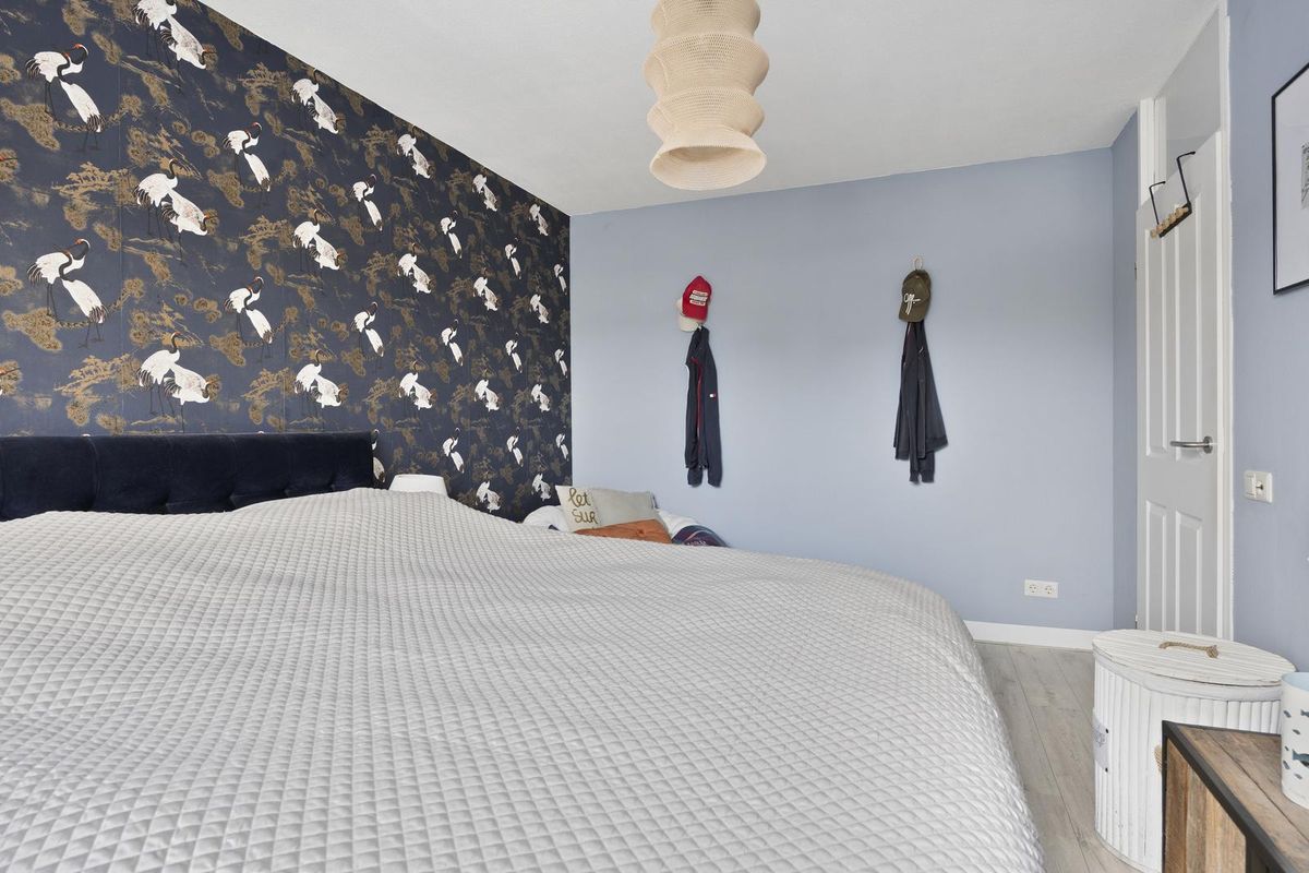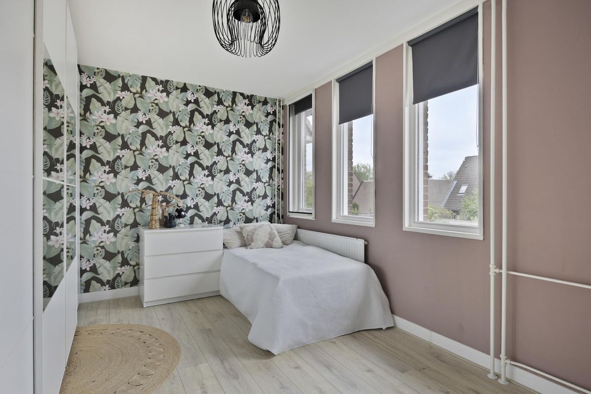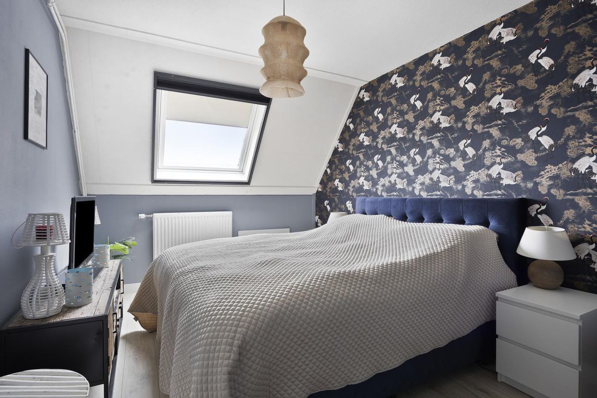 Op de eerste verdieping zijn twee royale slaapkamers te vinden. De slaapkamer aan de achterzijde beslaat de volledige breedte van de woning en kan net als de kamer aan de voorzijde als master bedroom dienen. De moderne badkamer straalt rust en luxe uit met beige tegels, een ligbad, een inloopdouche, een tweede toilet en een wastafelmeubel met kom. Op de tweede verdieping kom je eerst op een ruime overloop met aansluitingen voor de wasmachine en droger. Daarnaast is hier de derde slaapkamer met dakraam, verrassend ruim en voorzien van veel slimme kastruimte.