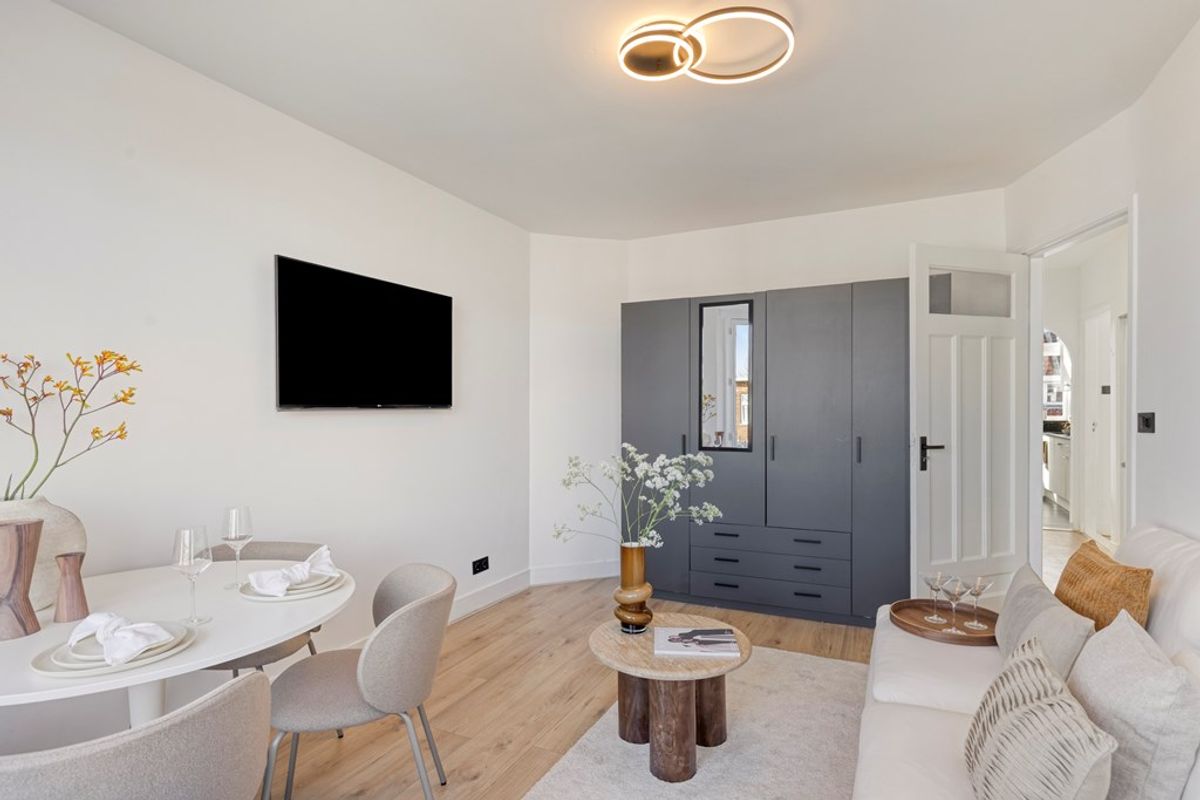 Dit ruime appartement met drie slaapkamers biedt een nette, verzorgde basis en is dan ook instapklaar. De woon- en eetkamer vormt het hart van de woning en biedt ruimte voor een eettafel. De authentieke glas-in-lood bovenramen zorgen daarbij voor extra sfeer en karakter.