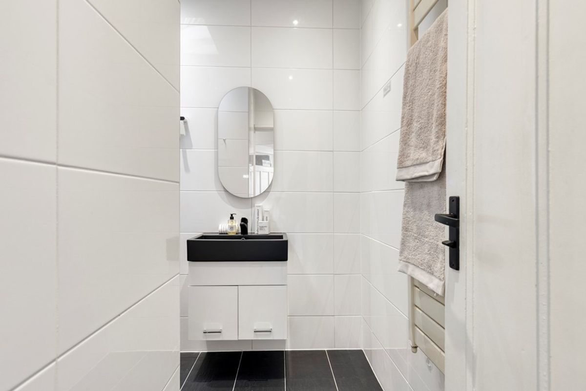 The bathroom is recently been fully renovated and finished in a contemporary style. Thanks to the skylight, plenty of natural daylight enters the space, creating a bright and pleasant atmosphere. A comfortable and well-designed room where functionality and aesthetics come together.
