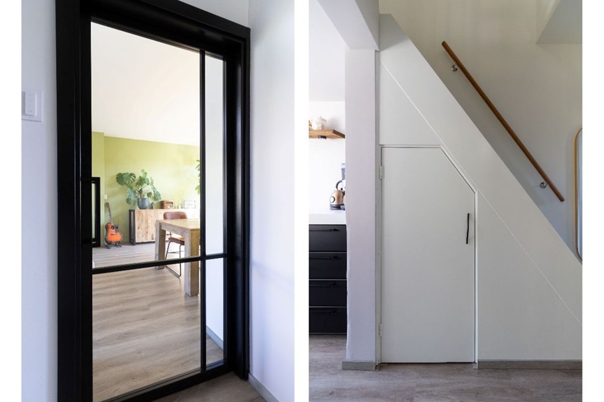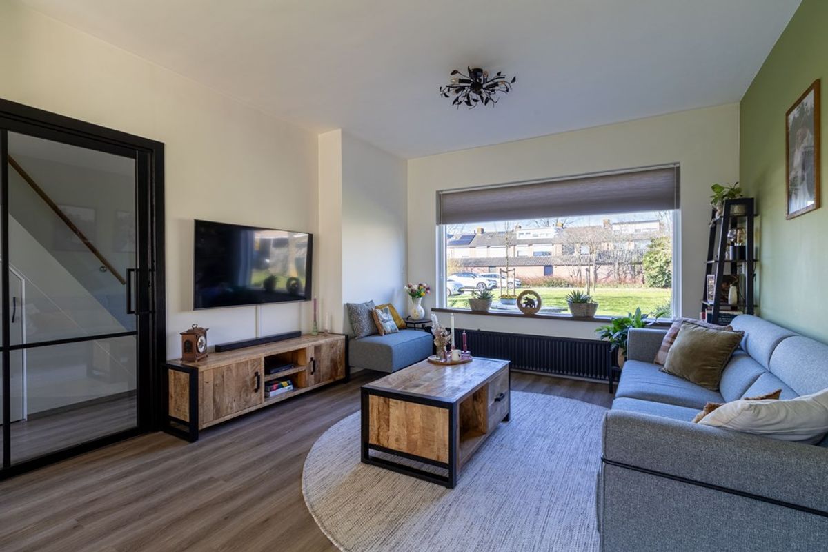 Via de entree met luifel betreed je de woning in de hal. Vanuit hier heb je toegang tot het toilet, de trapopgang naar de eerste verdieping en een praktische voorraadkast. De hal geeft tevens toegang tot de ruime woonkamer aan de voorzijde van de woning. Dankzij de grote raampartijen is dit een lichte en prettige leefruimte met voldoende plek voor een comfortabele zithoek en eethoek.
