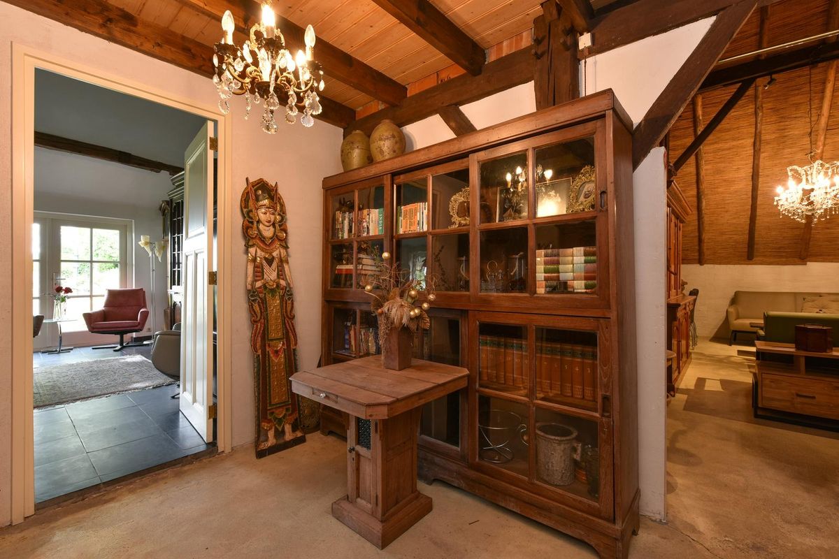 Het oude stalgedeelte, 'den Deel', biedt zicht tot de nok met authentieke balken en een open zolder voor extra bergruimte. Deze multifunctionele ruimte heeft openslaande deuren naar de oprit en een inpandige garage, beide zijn voorzien van vloerverwarming. Deze ruimte is bijvoorbeeld geschikt als aanleun/zorgwoning met een eigen toegangsdeur, d.m.v. de openslaande deuren aan de voorzijde. Er is een eigen achterom via een poort en pad naar de achtertuin.